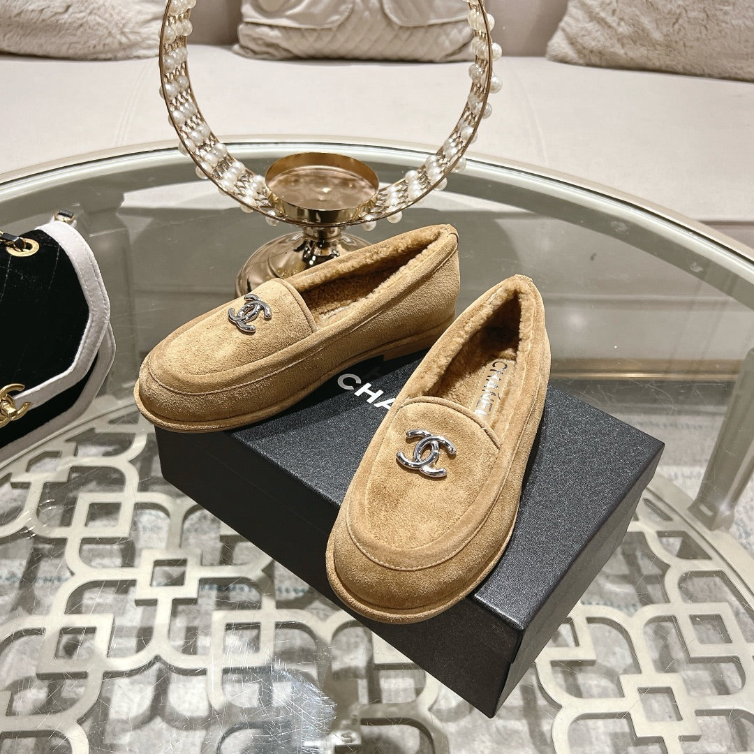 CC Loafers Beige Sheepskin Mix Bow 297796