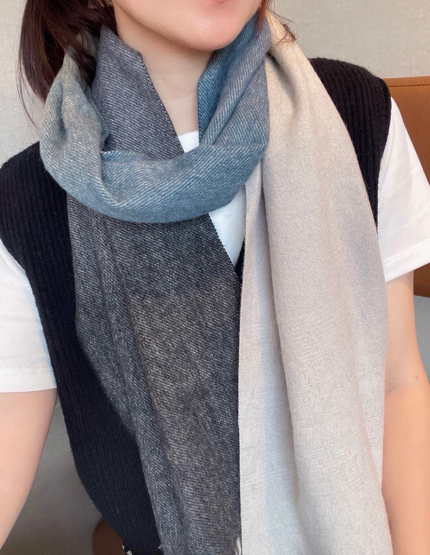 CC Scarf 180 CM In Black Blue Mix Grey Beige Cashmere 381207