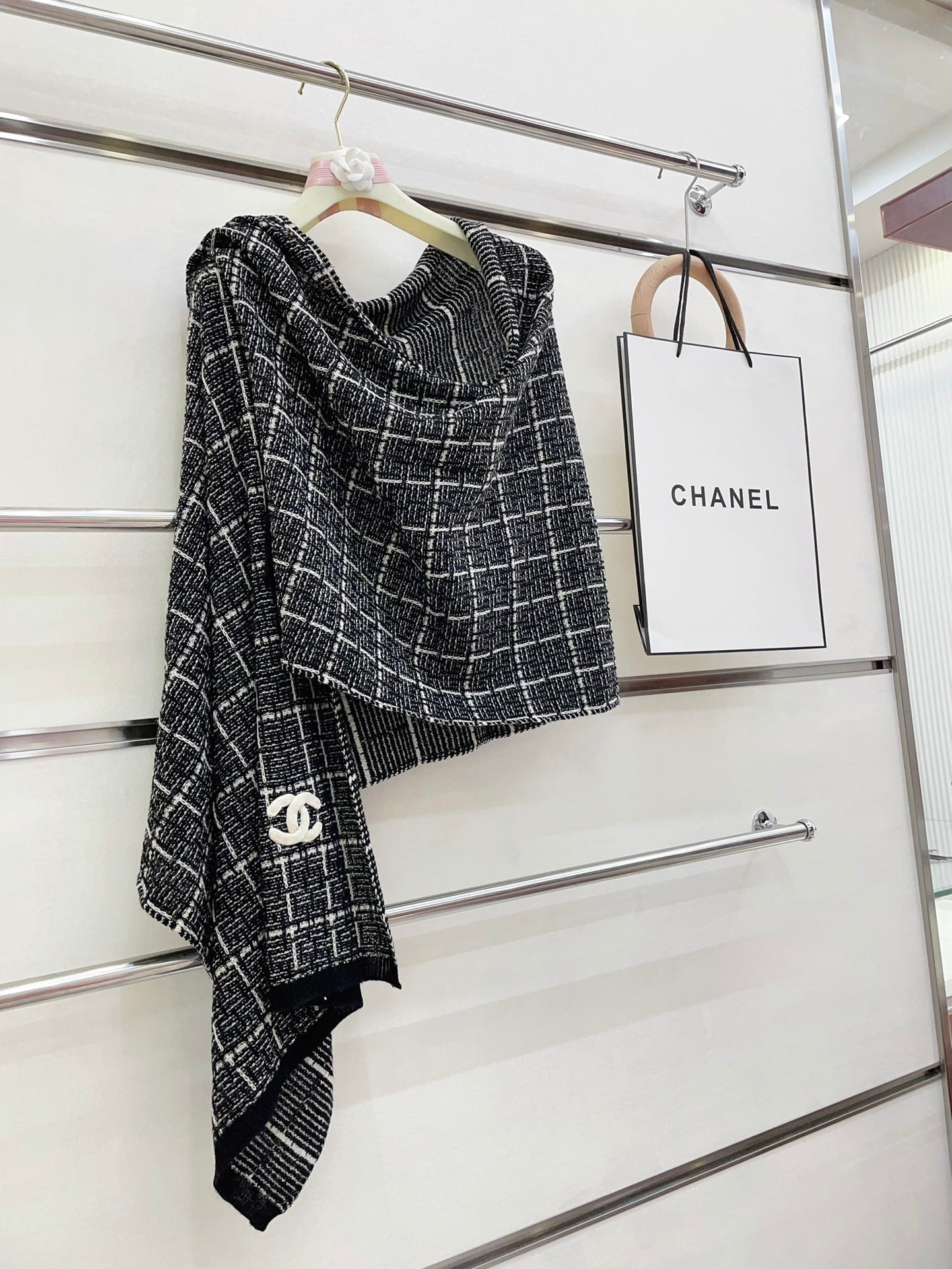 CC Scarf 180 CM In Black With White Stripes Cashmere 415181
