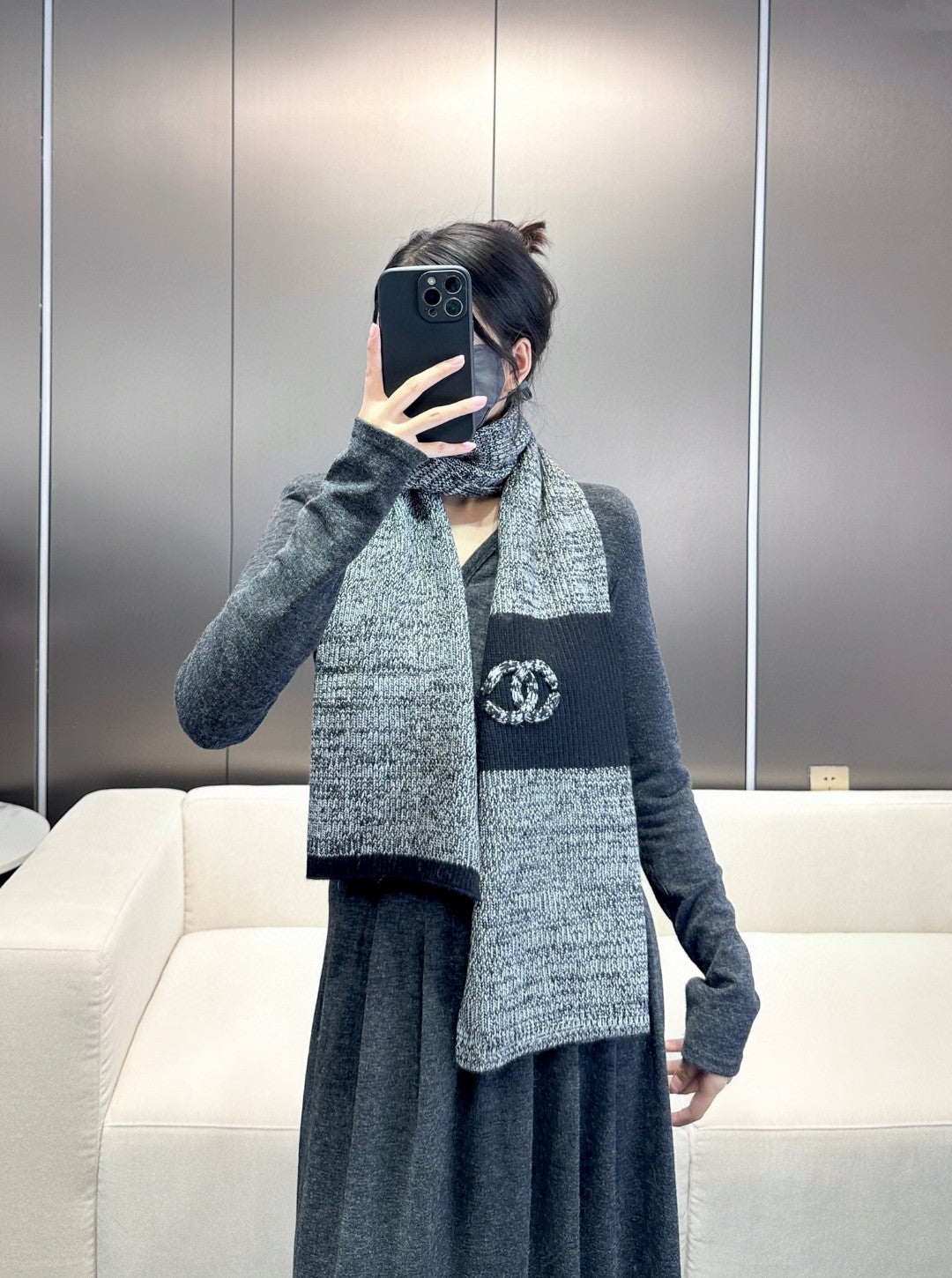 CC Scarf 180 CM In Grey Black Mix Black Cashmere 415136