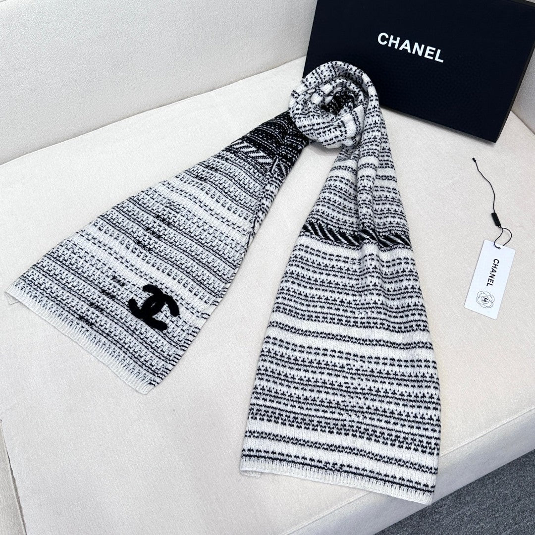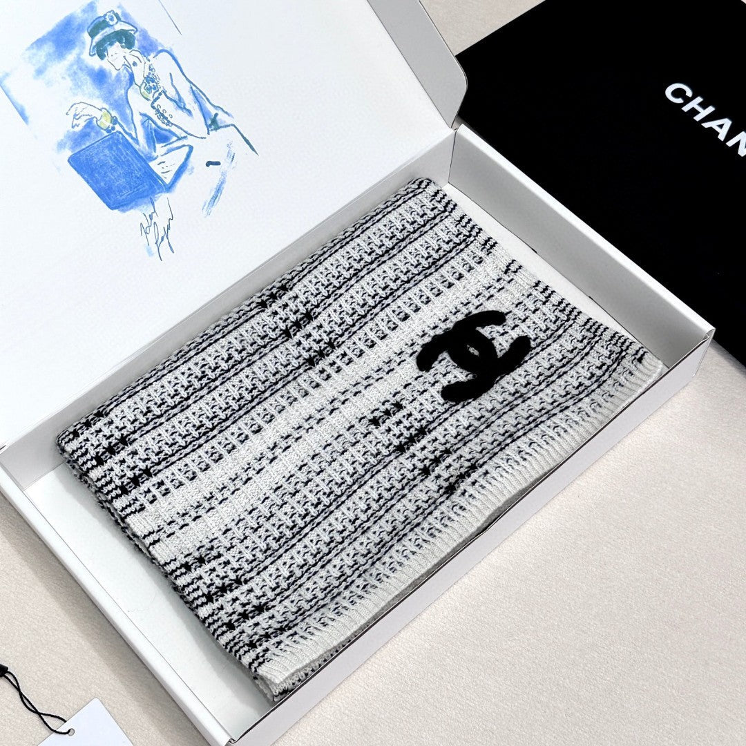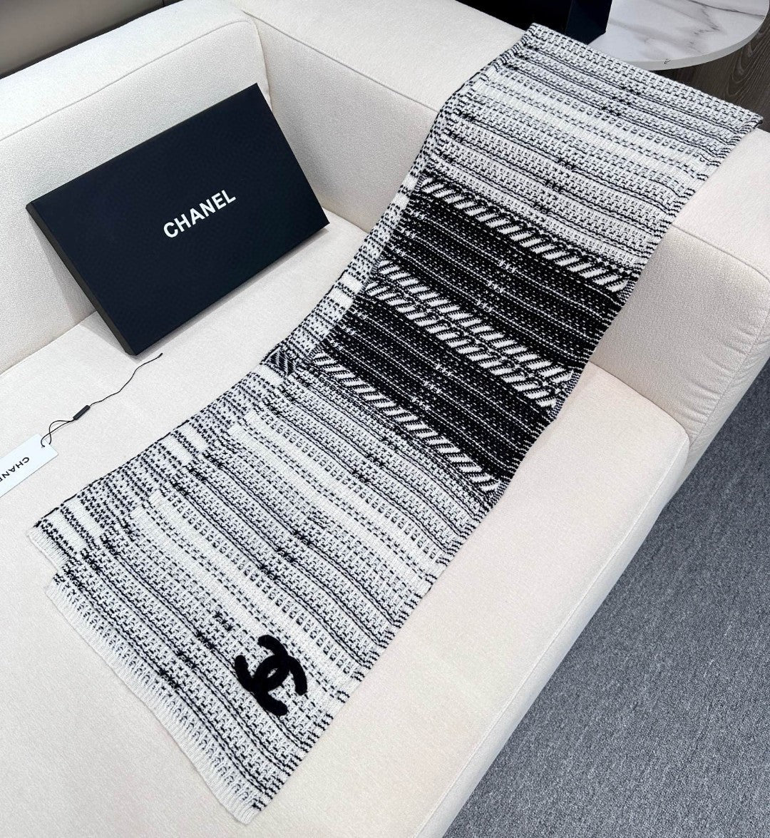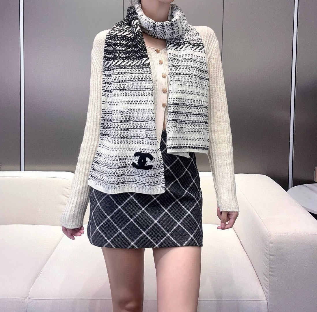 CC Scarf 180 CM In White Black Wool 422665