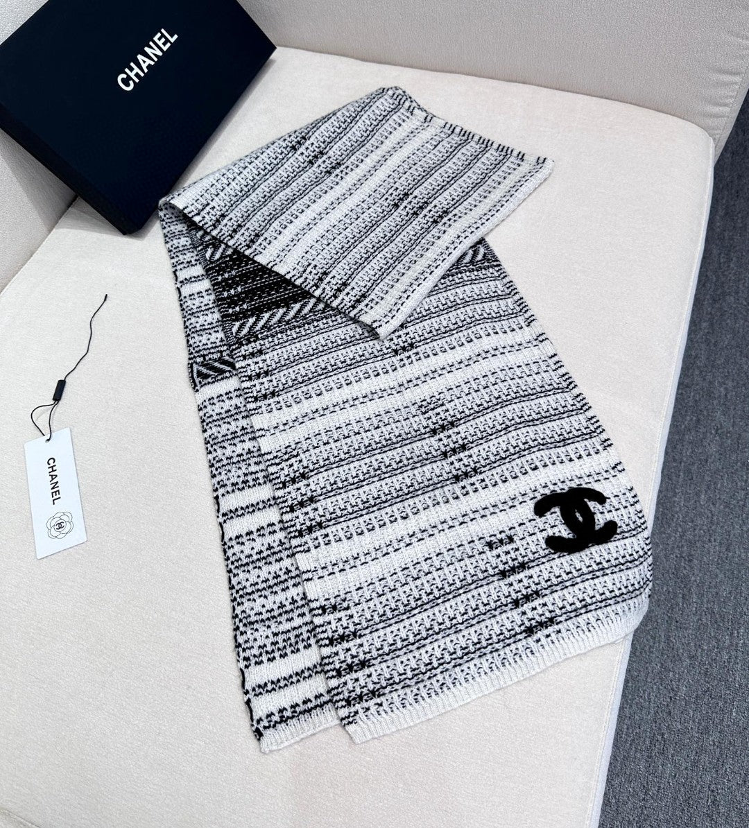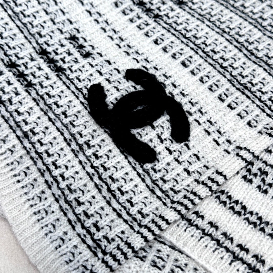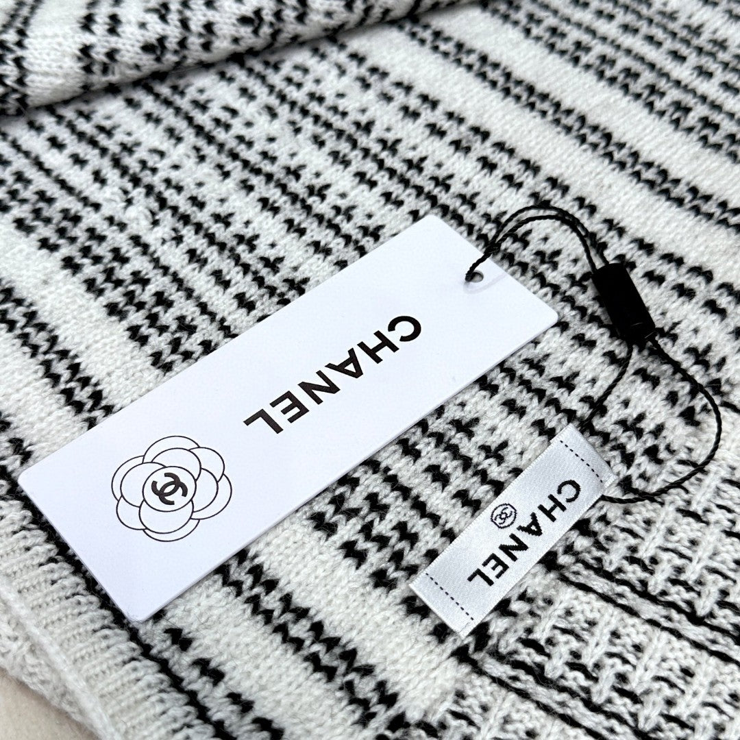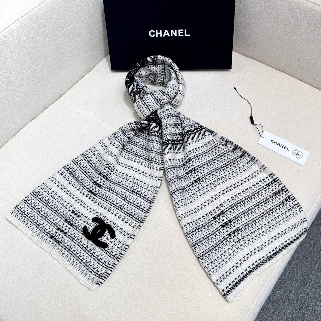 CC Scarf 180 CM In White Black Wool 422665