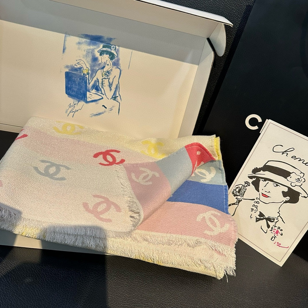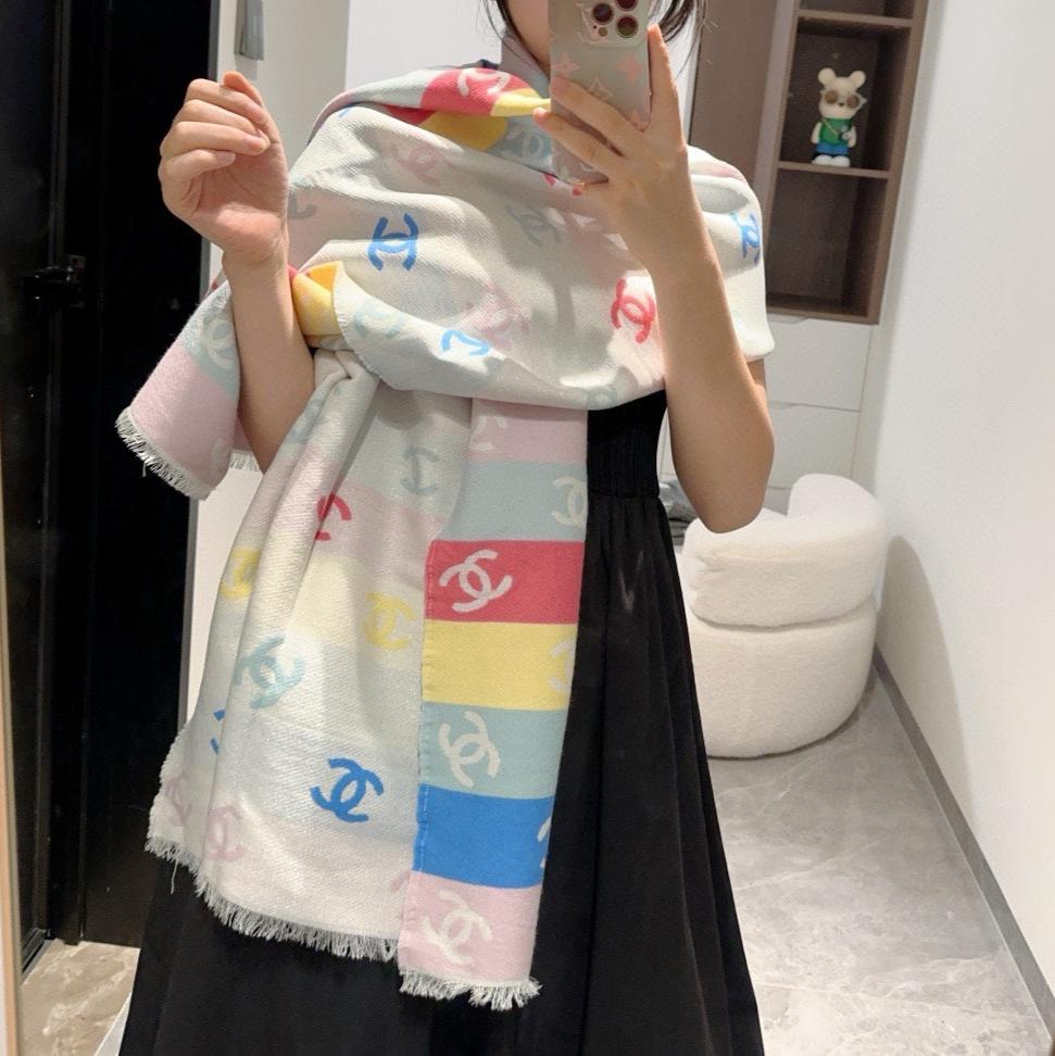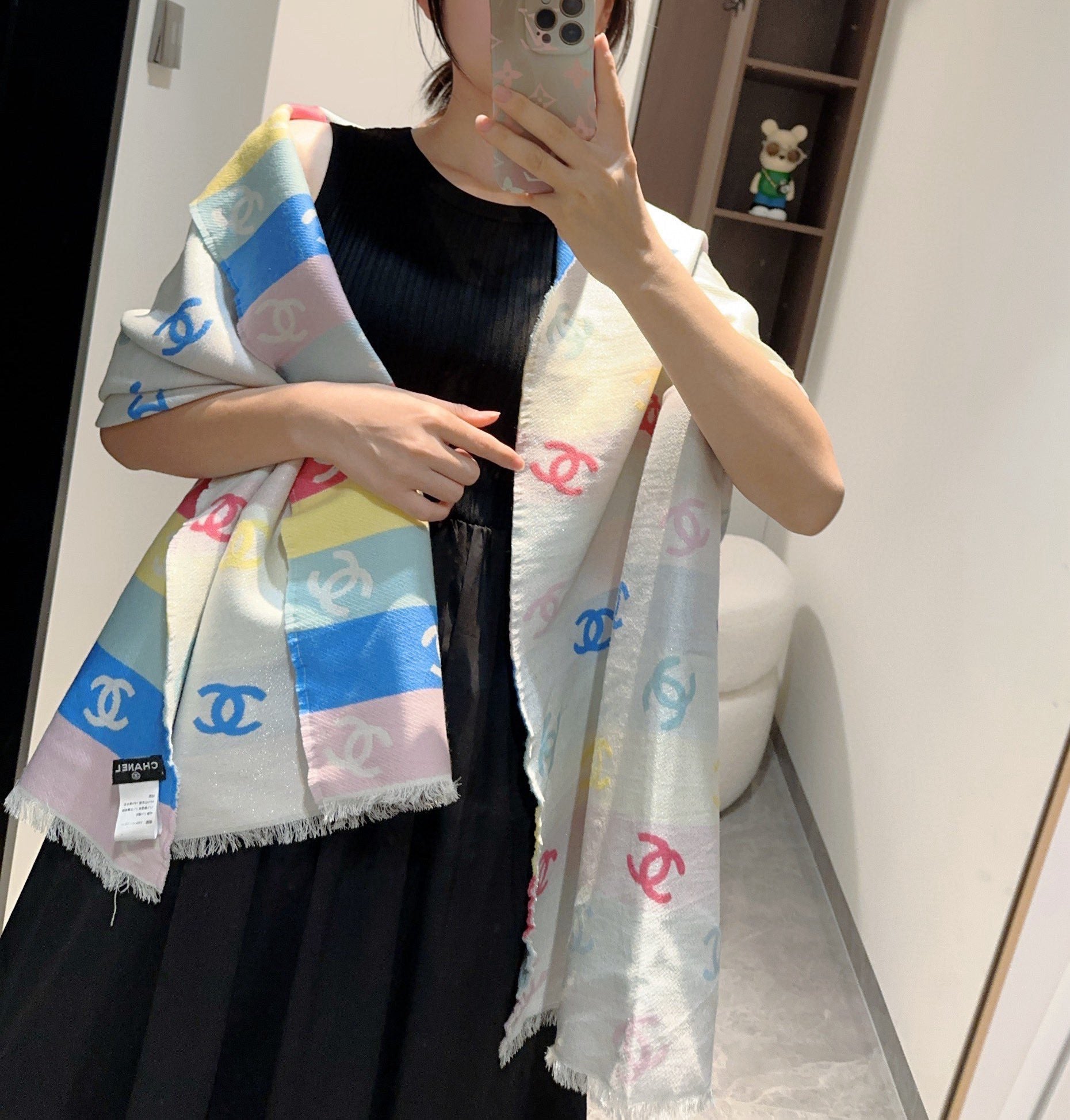 CC Scarf 180 CM In White Rainbow Cashmere Mix Wool And Mulberry Silk 422822