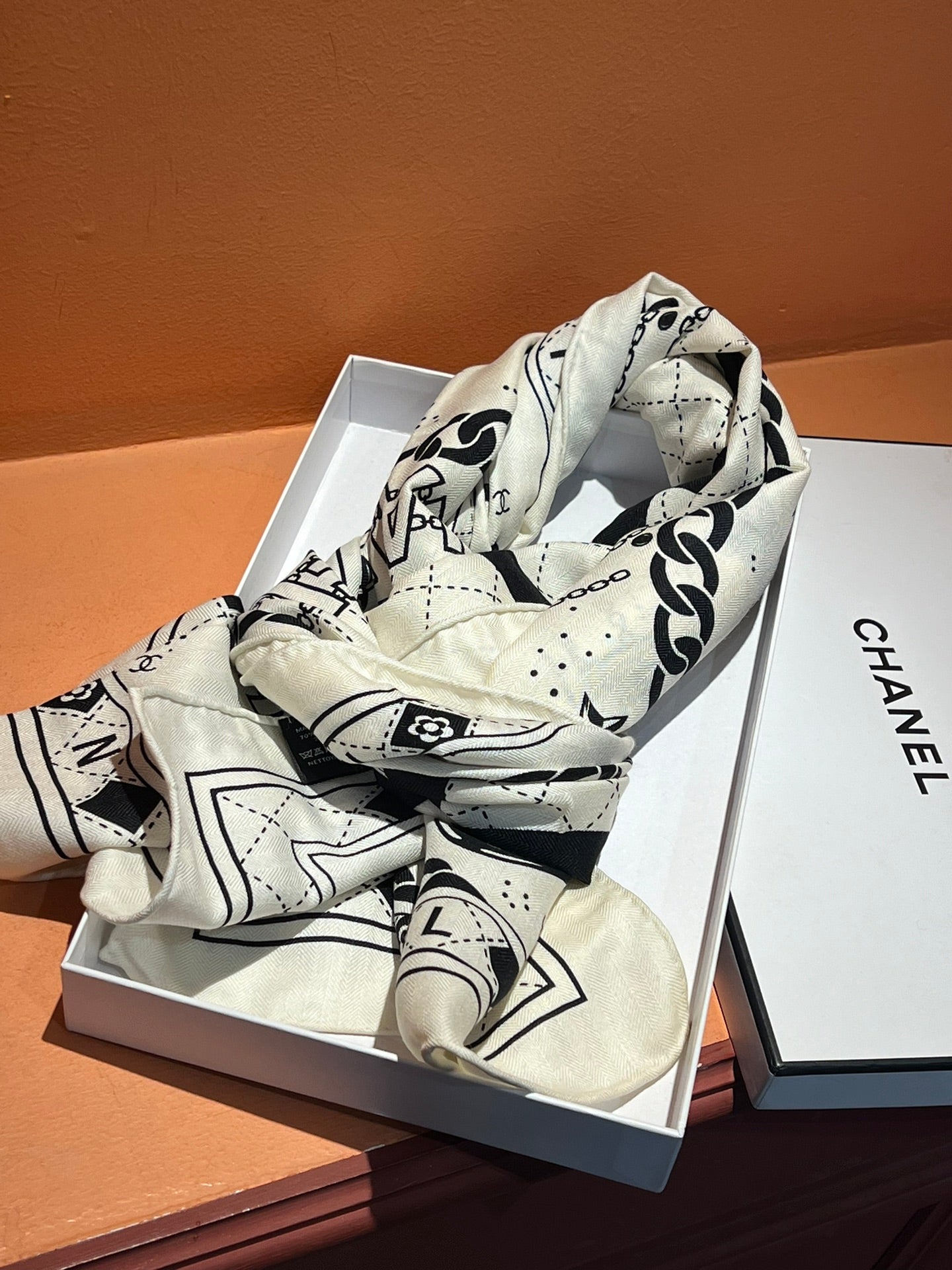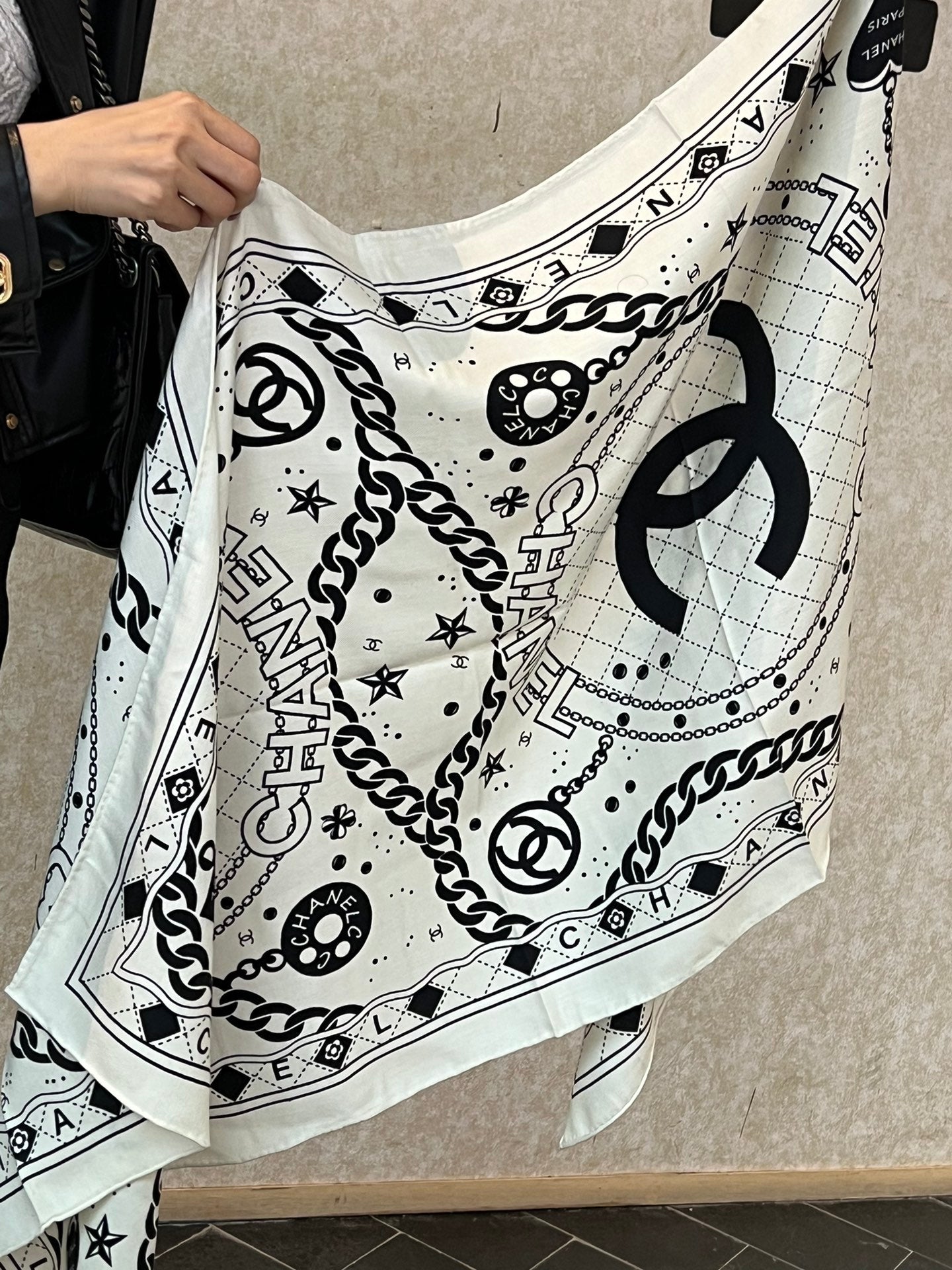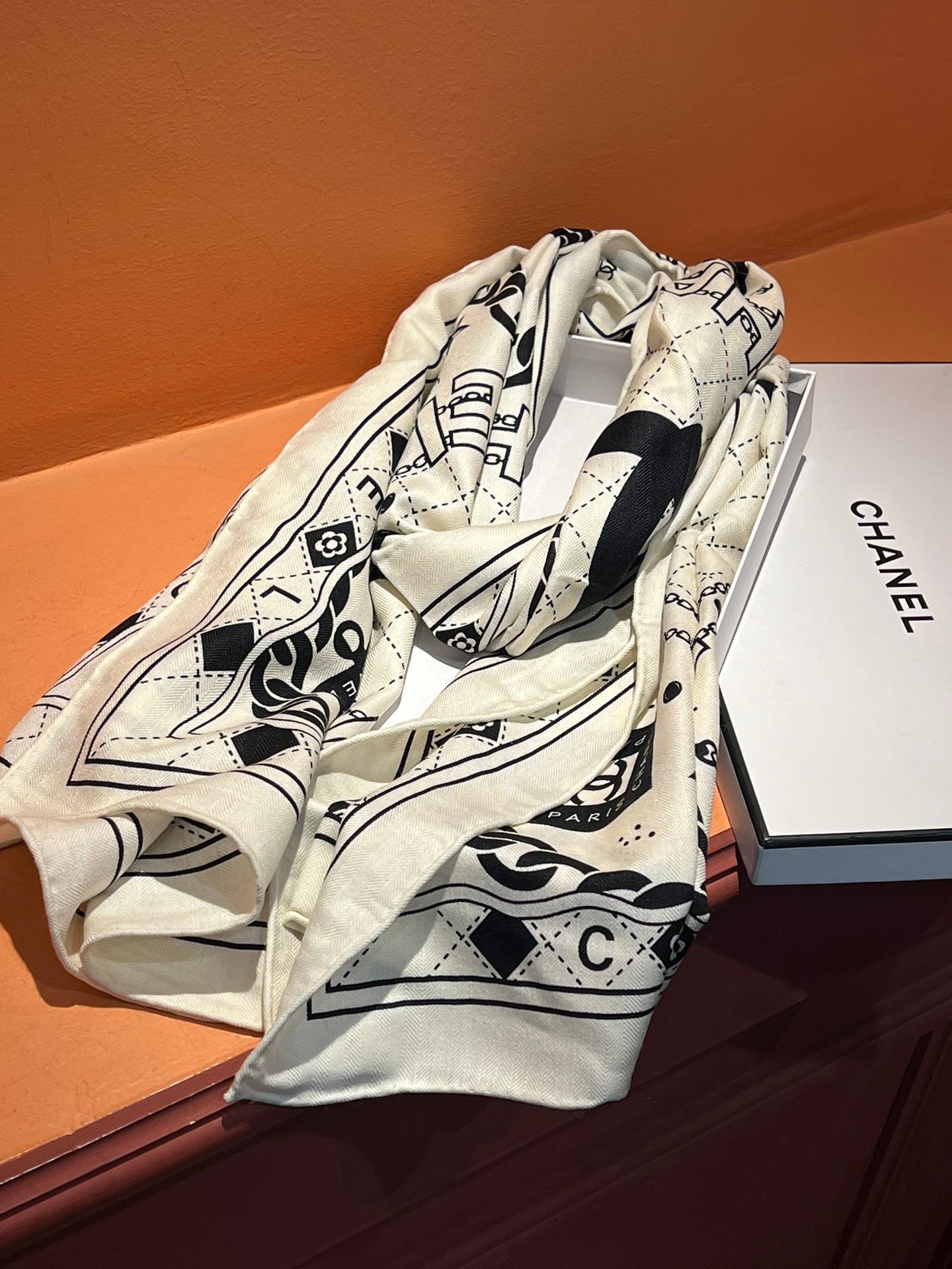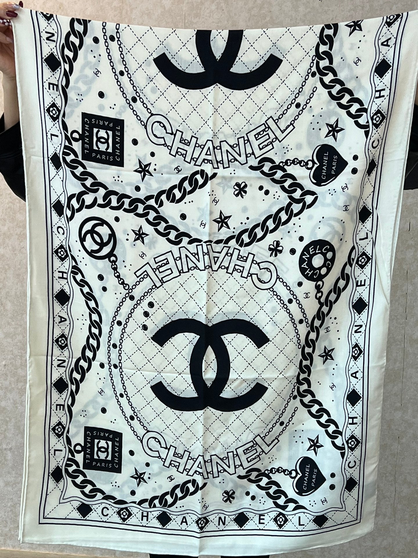 CC Scarf 185 CM White Black Cashmere Silk 418401
