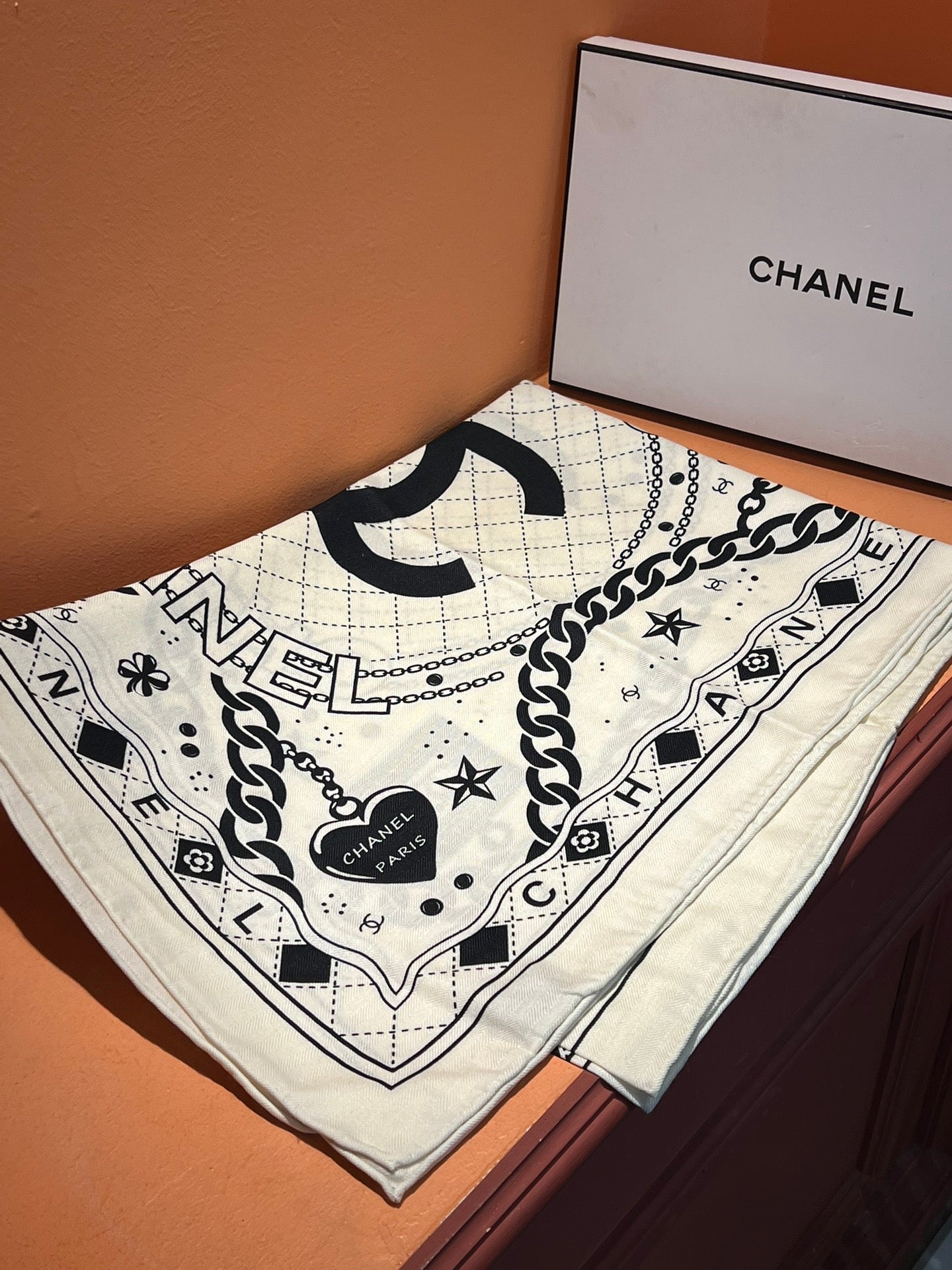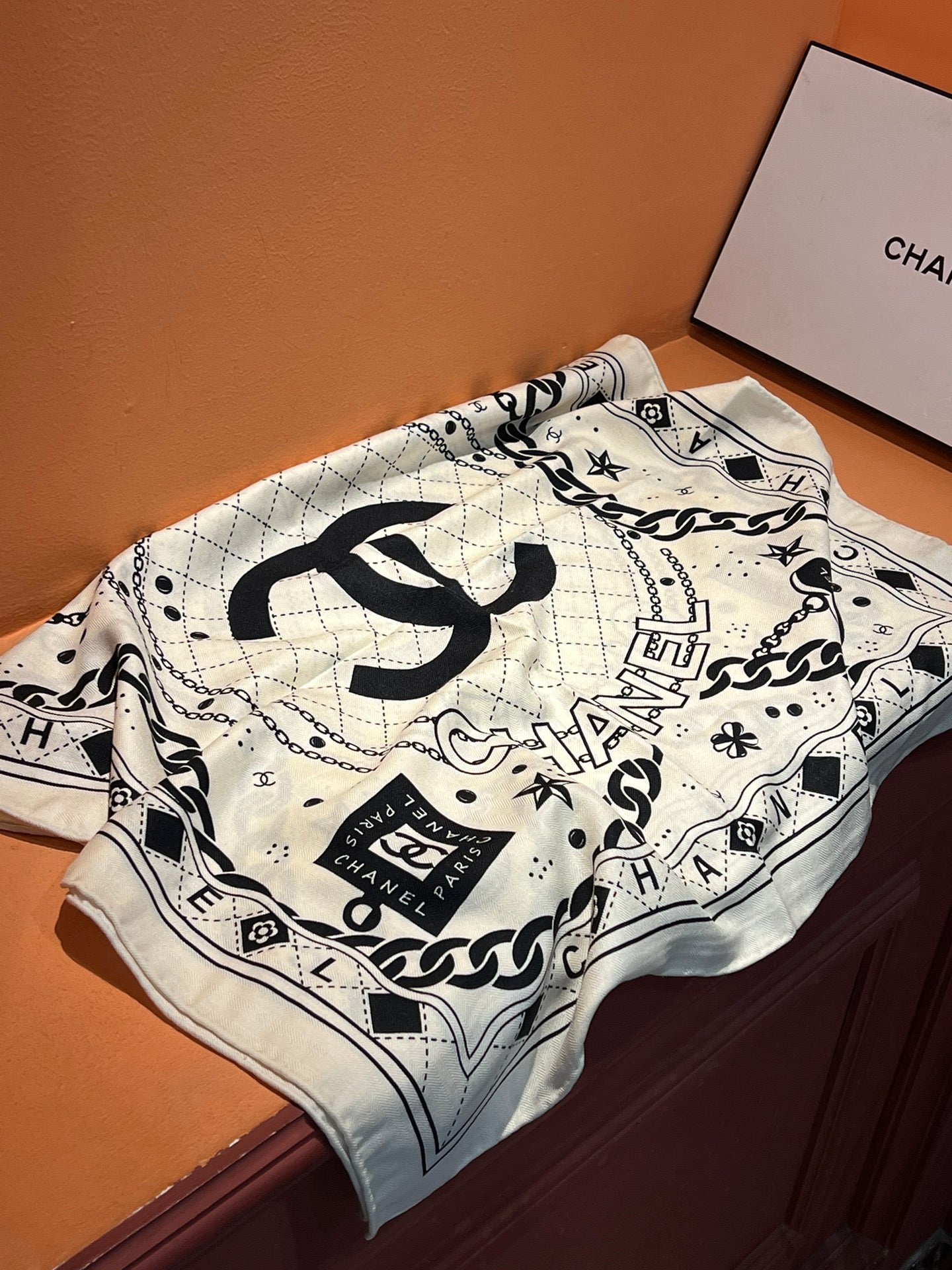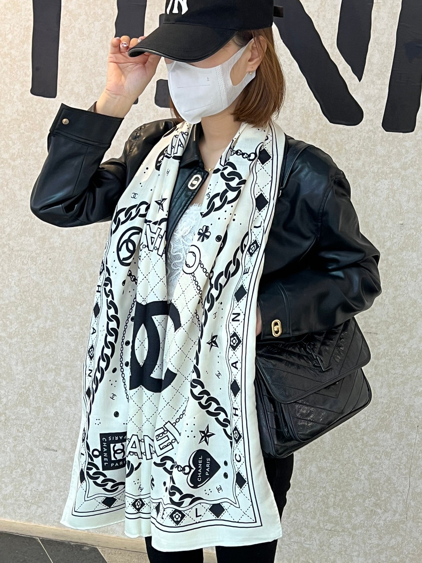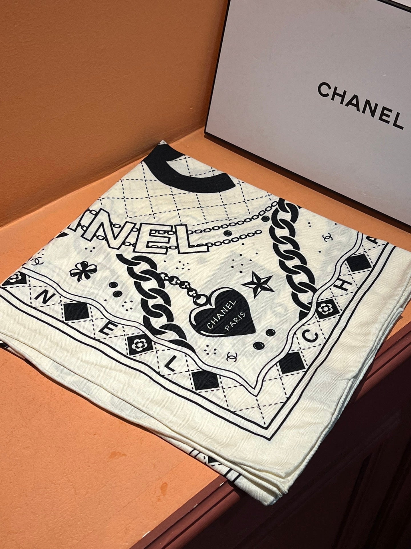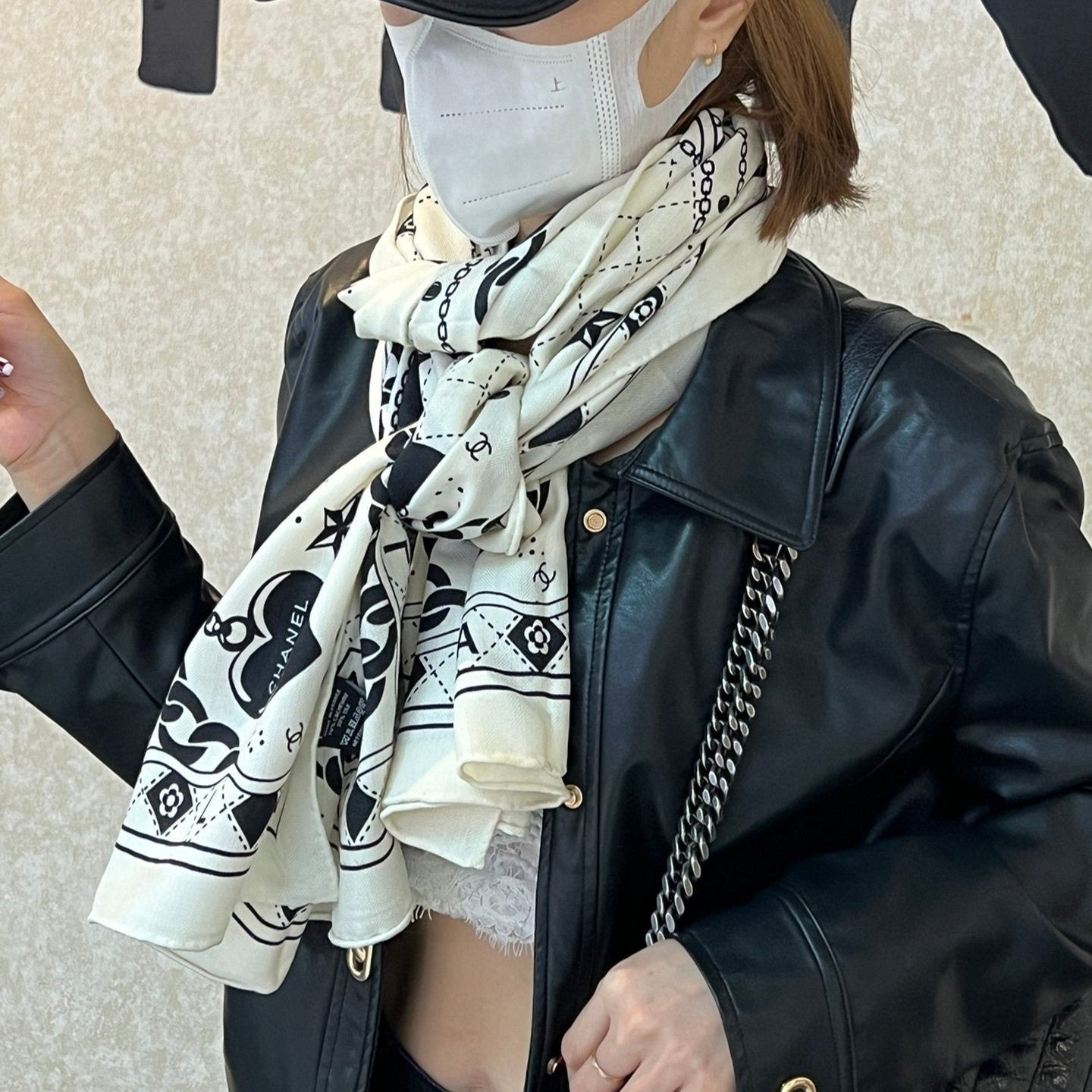 CC Scarf 185 CM White Black Cashmere Silk 418401