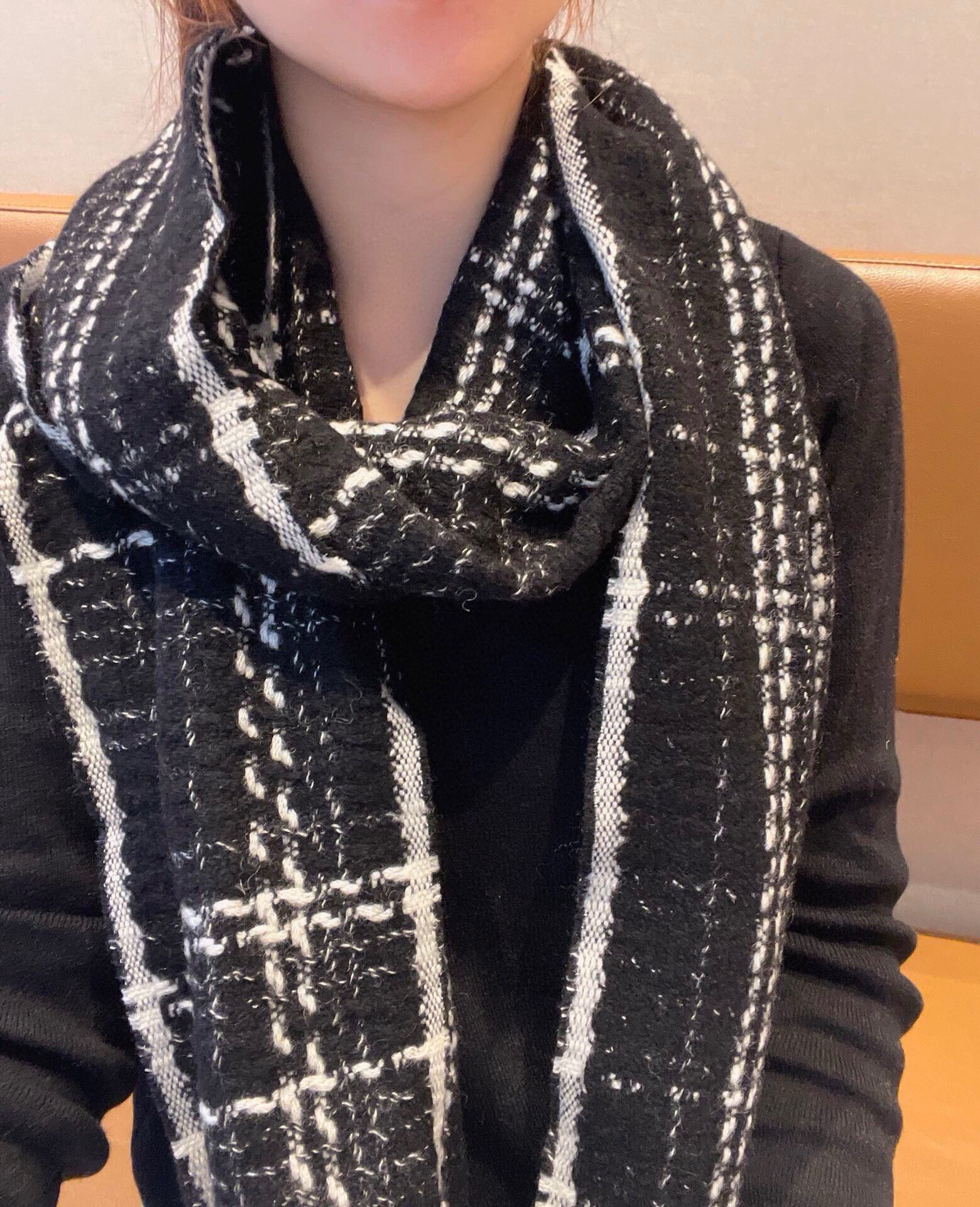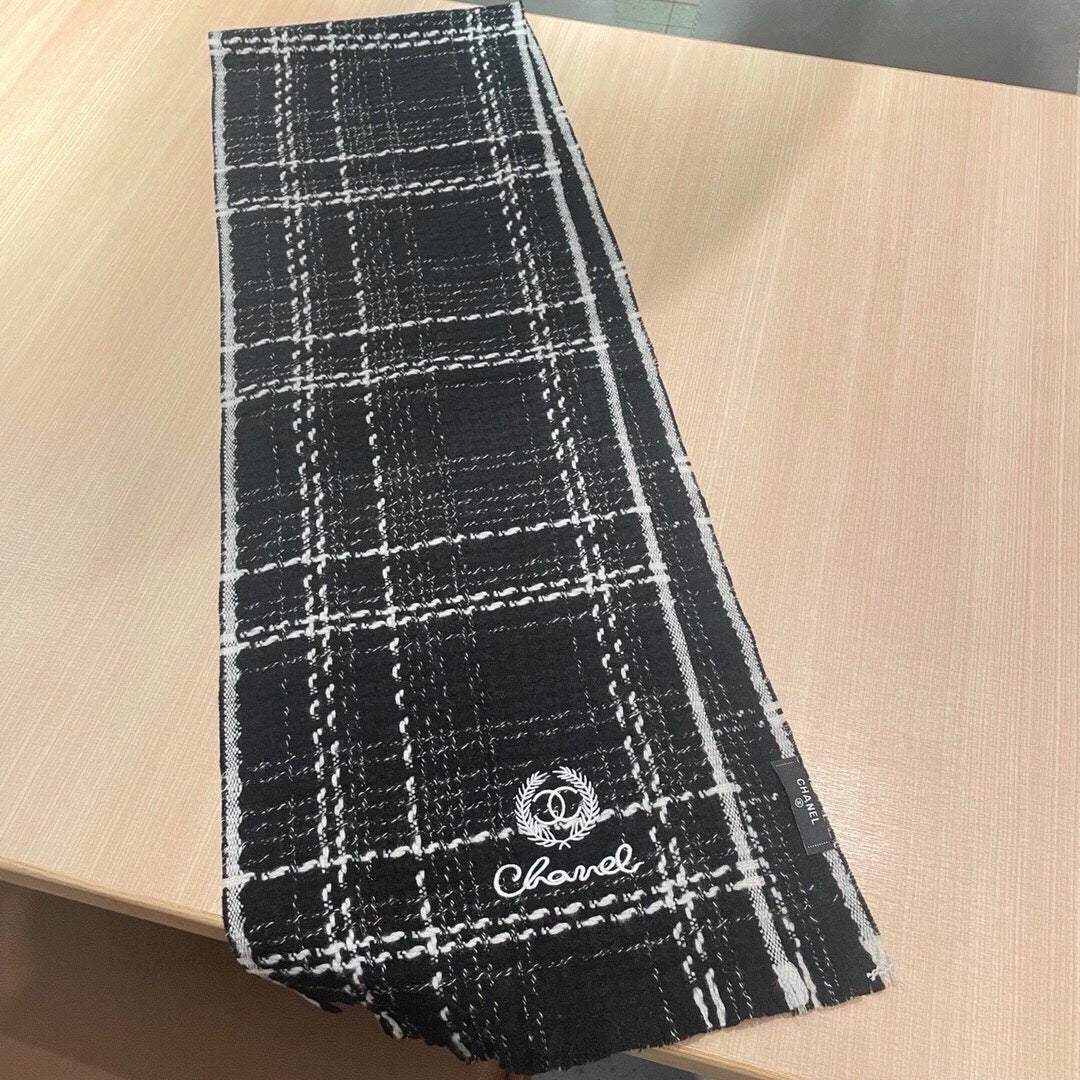 CC Scarf 186 CM In Black With White Stripes Fleece Wool 418246