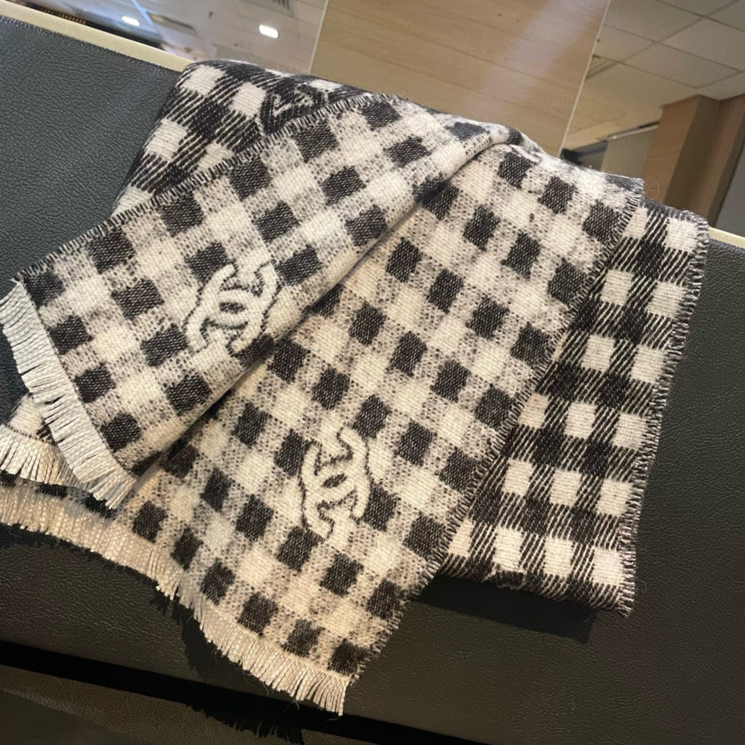 CC Scarf 190 CM In Black And White Plaid Cashmere Mix Wool And Silk 418284