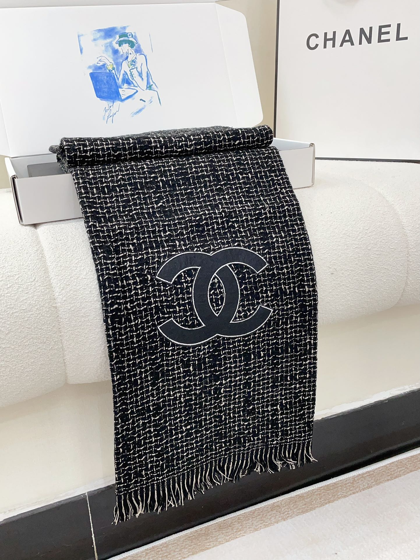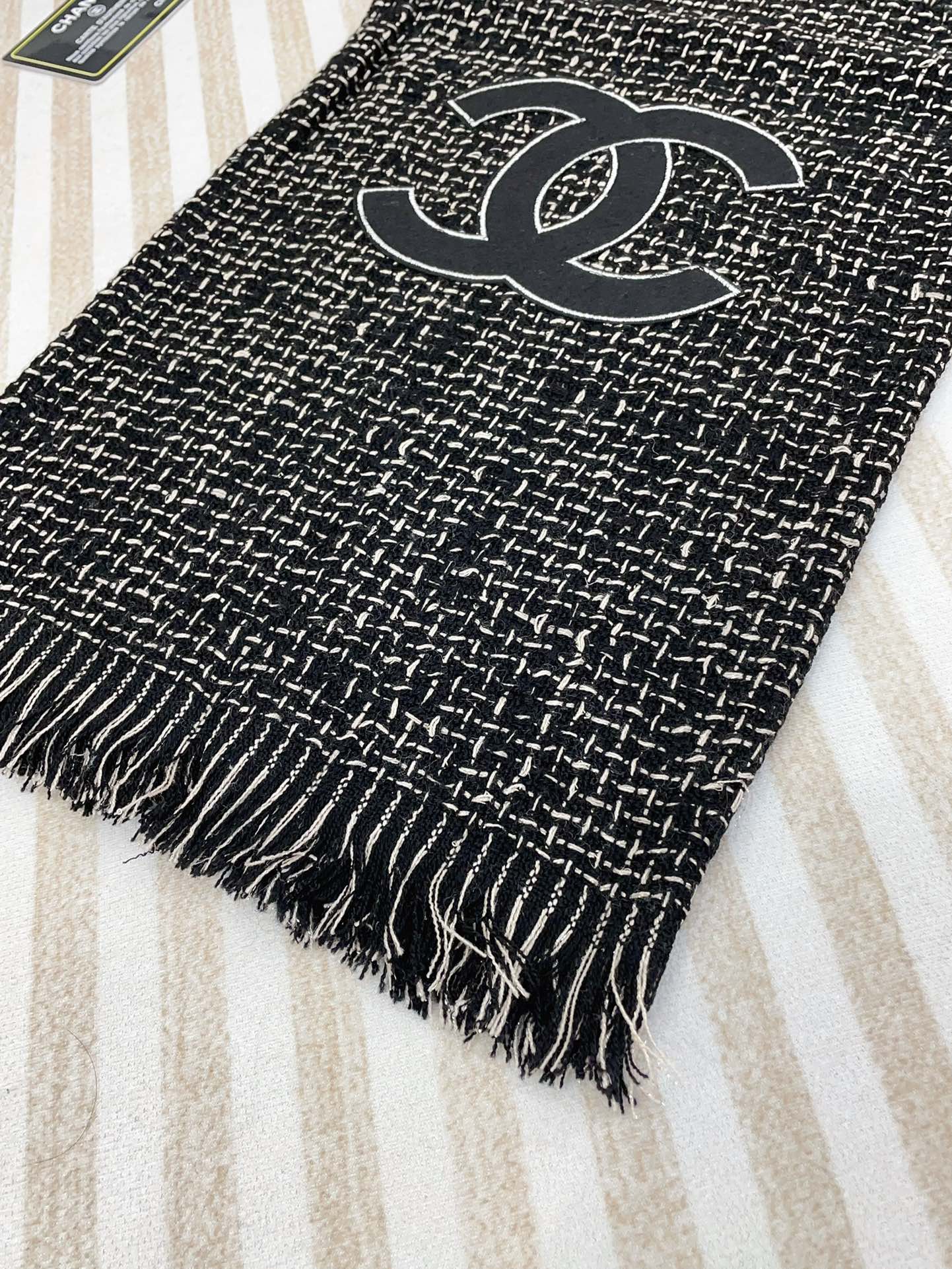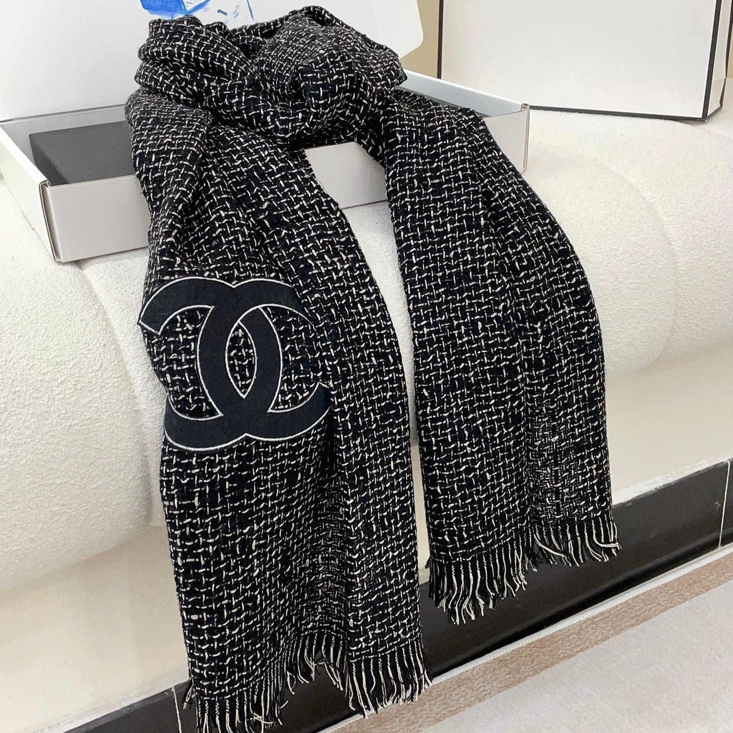 CC Scarf 190 CM In Black Mix White Cashmere 421407