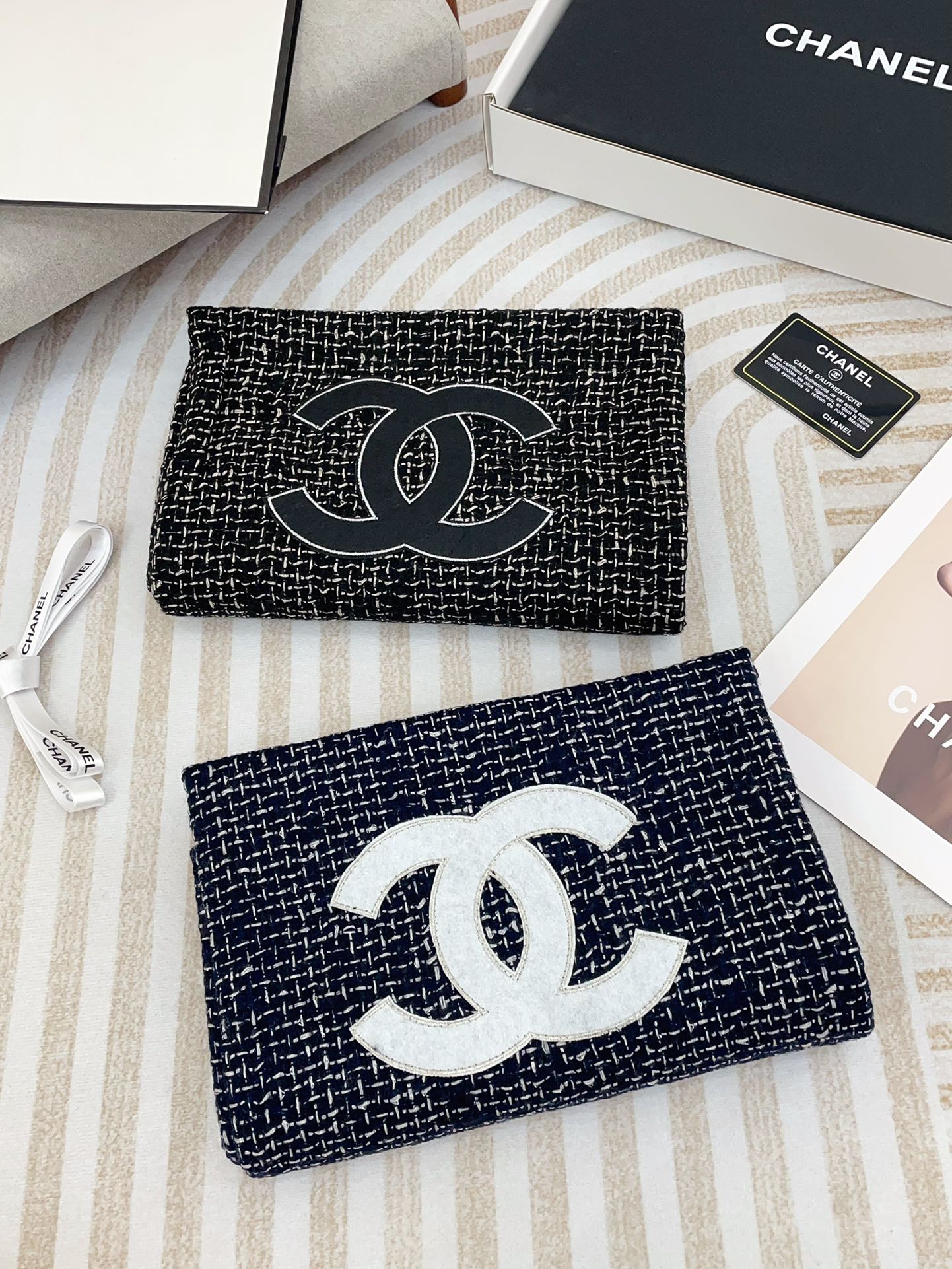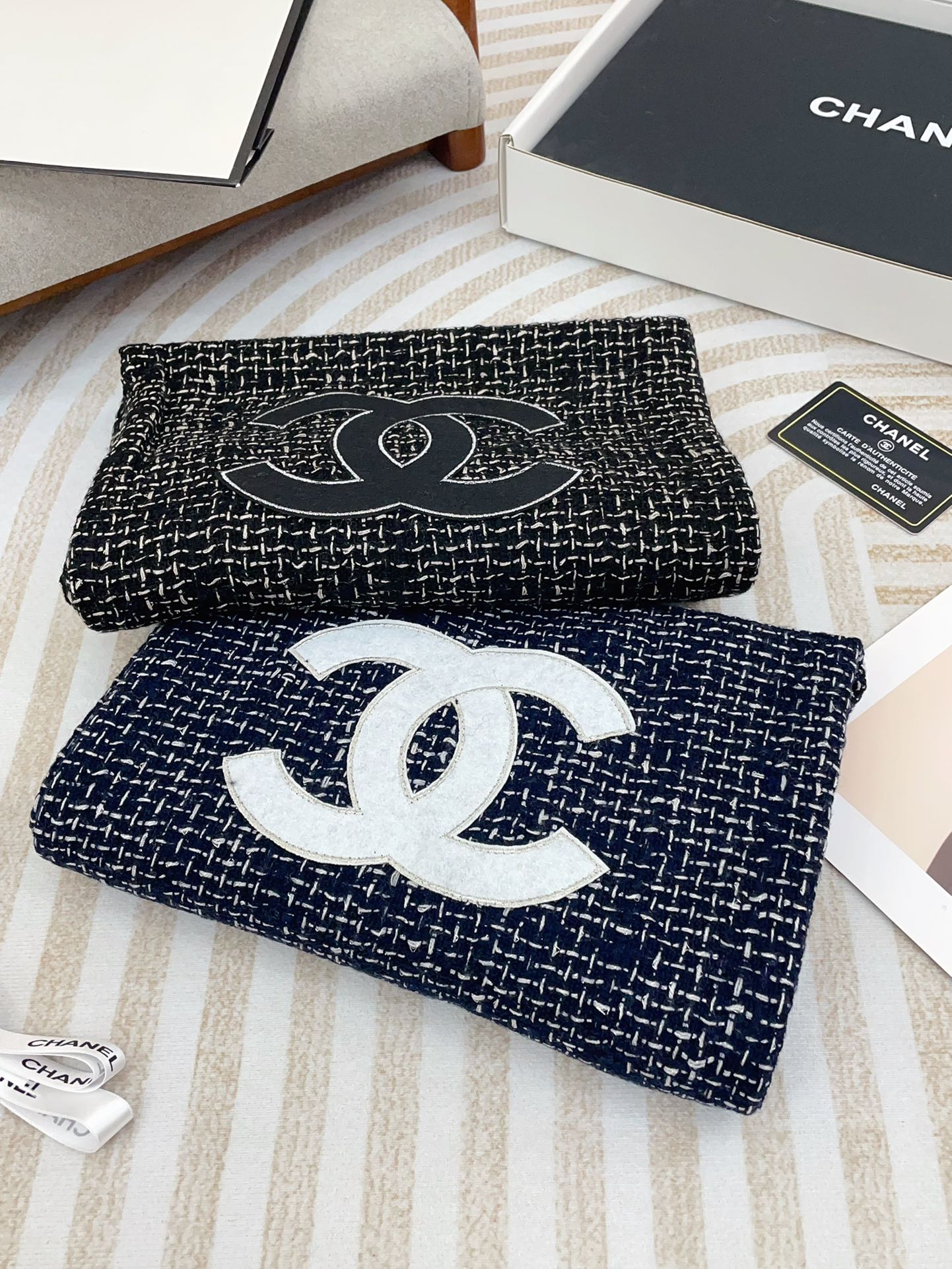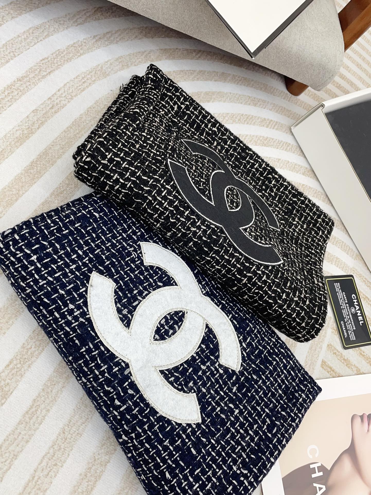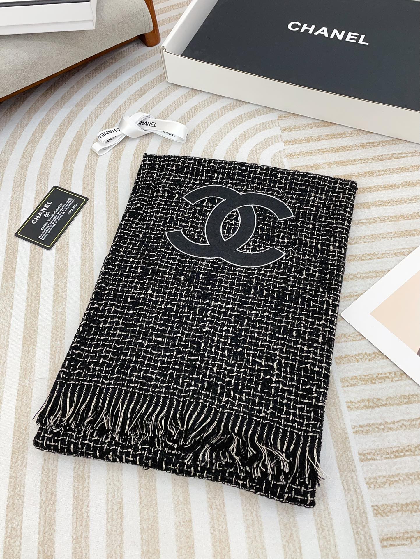 CC Scarf 190 CM In Black Mix White Cashmere 421407