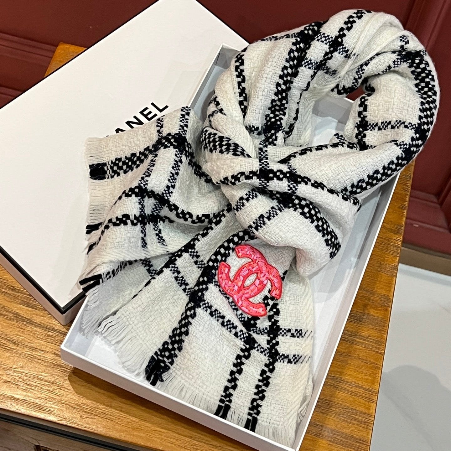 CC Scarf 190 CM In White With Black Stripes Wool 420038