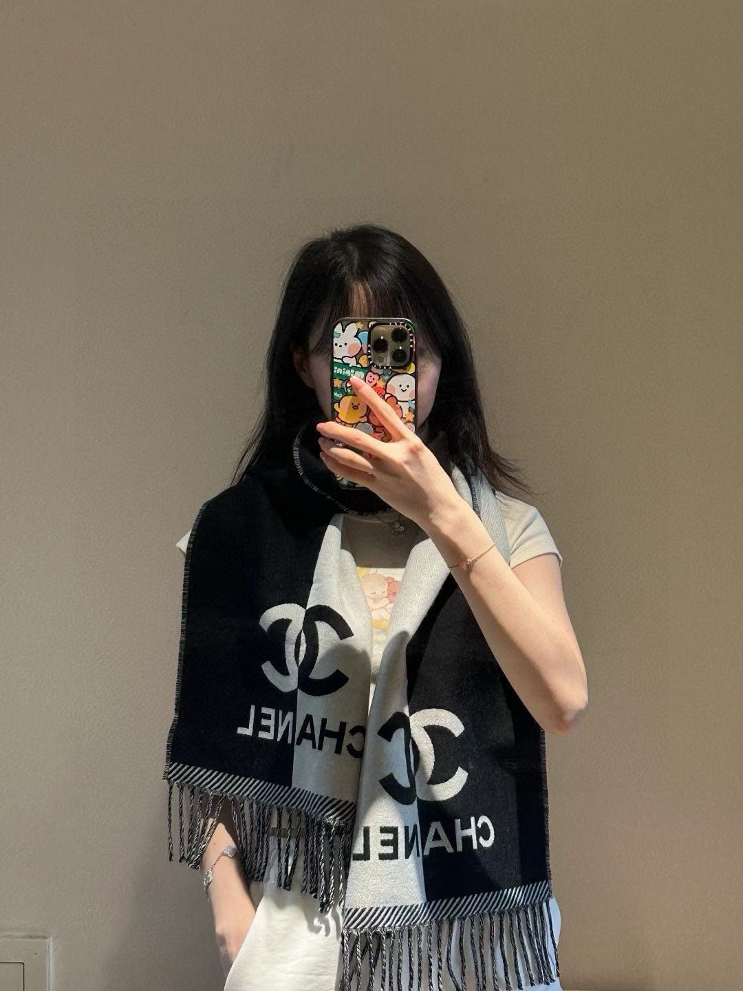 CC Scarf 200 CM In Black Mix Grey Wool And Cashmere 418269