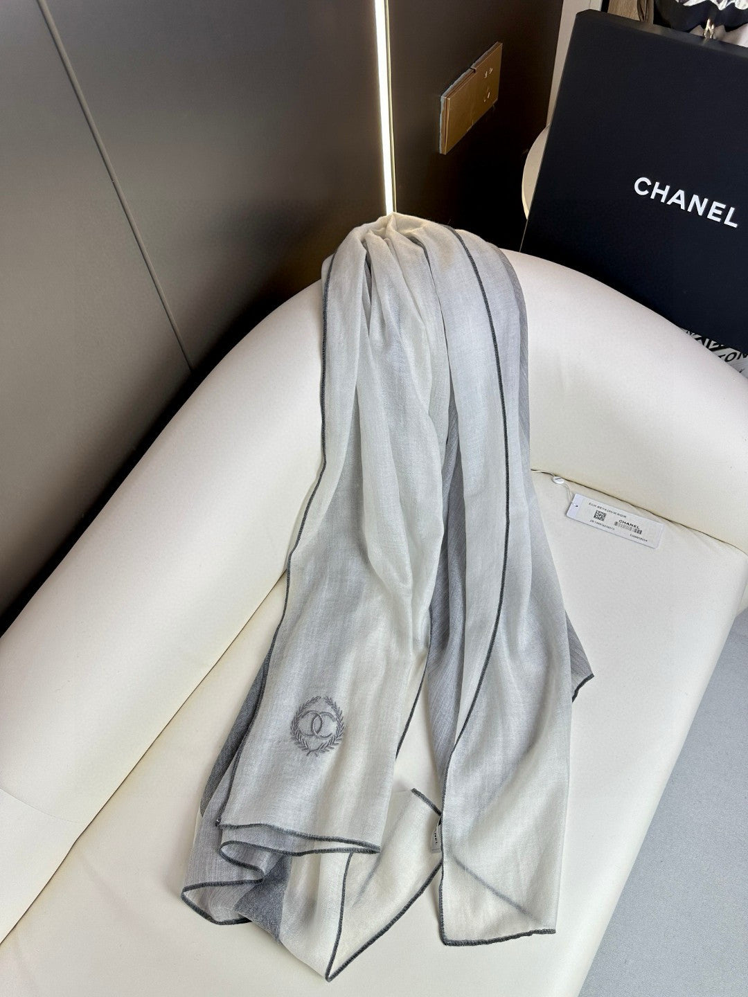 CC Scarf 200 CM In Light Grey Mix White Dark Grey Cashmere Silk 396448