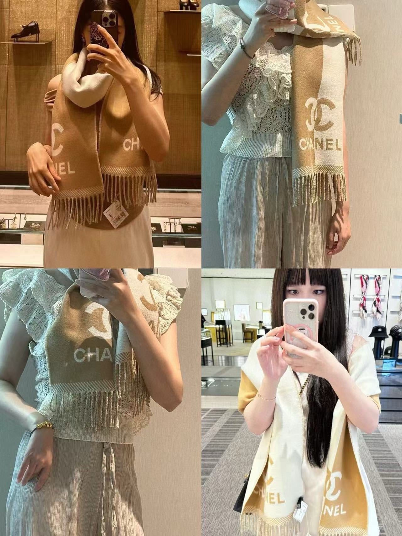CC Scarf 200 CM In White Mix Brown Wool And Cashmere 418270