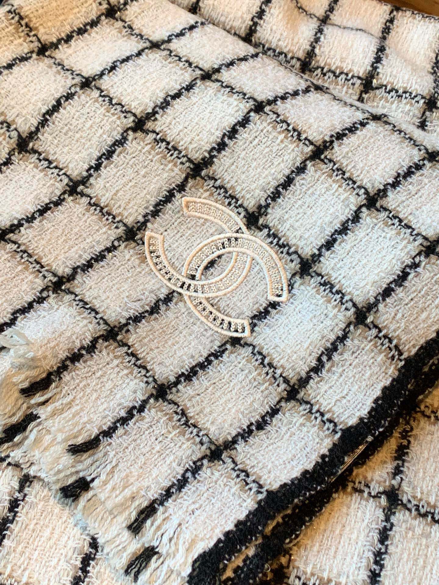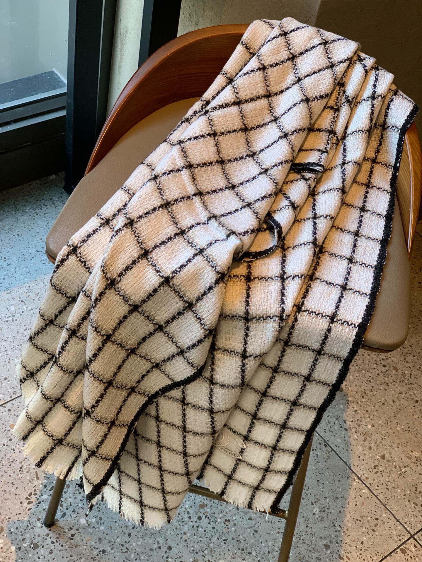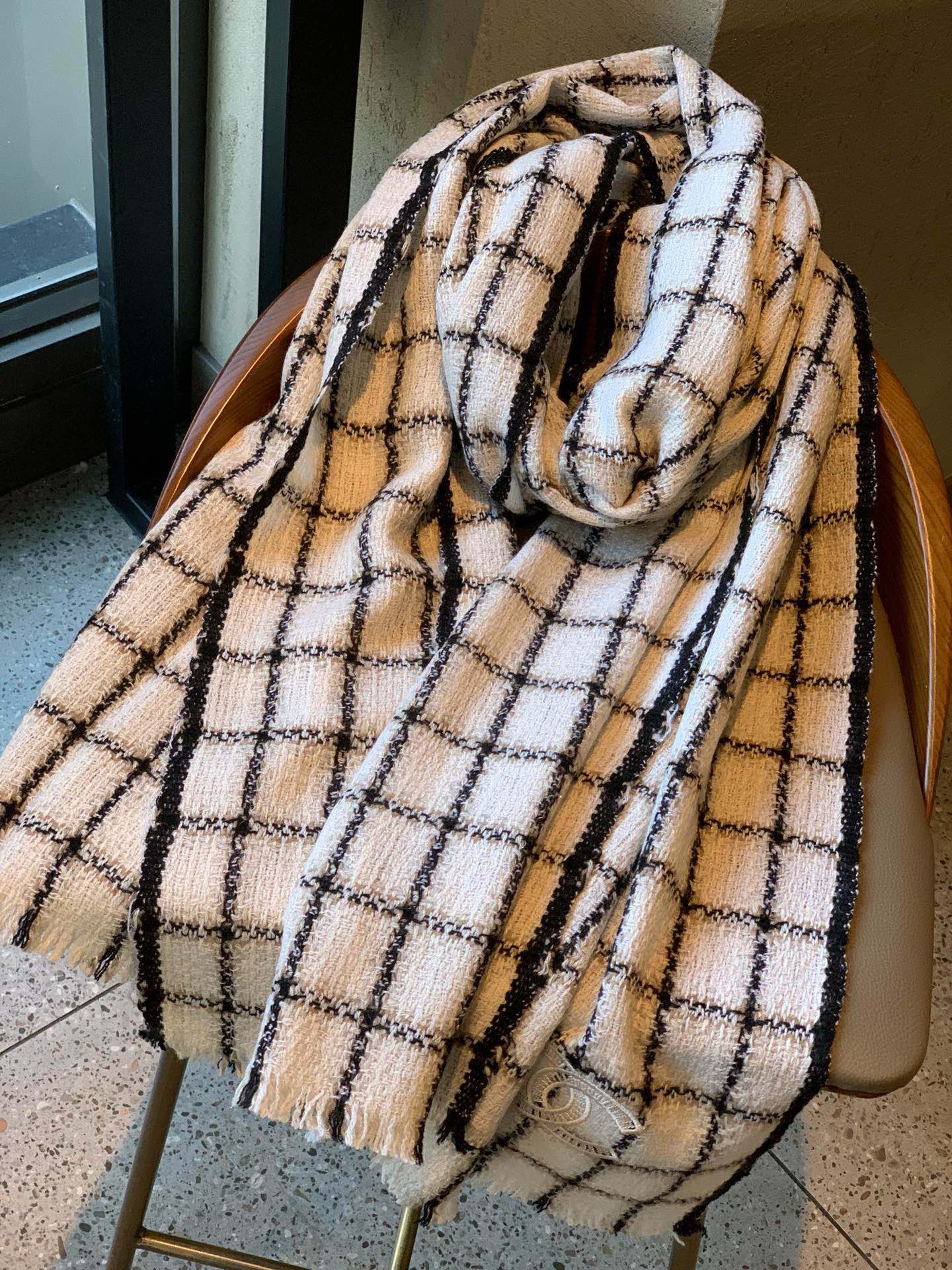 CC Scarf 200 CM In White With Black Plaid Cashmere 416803
