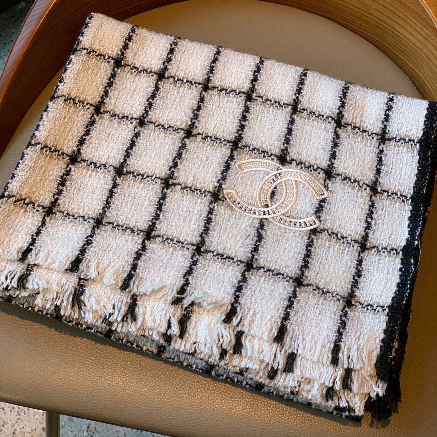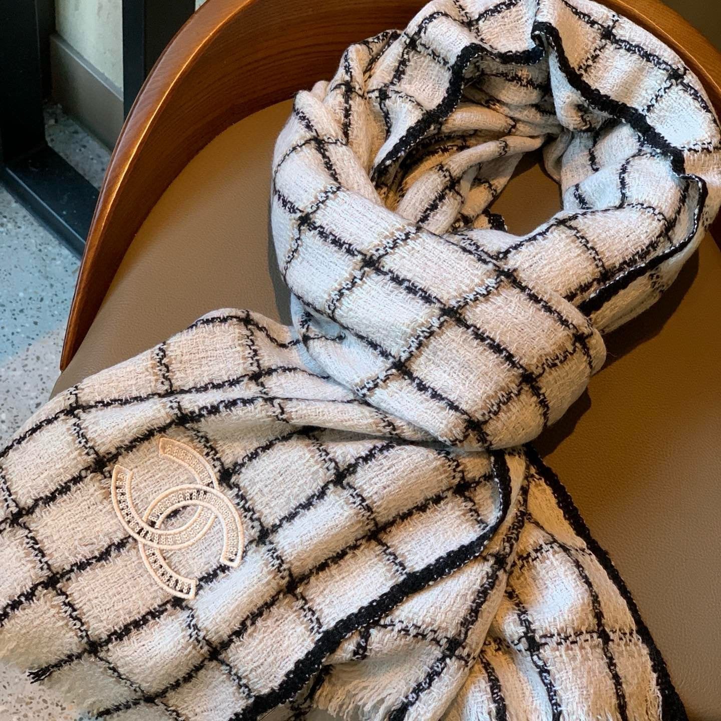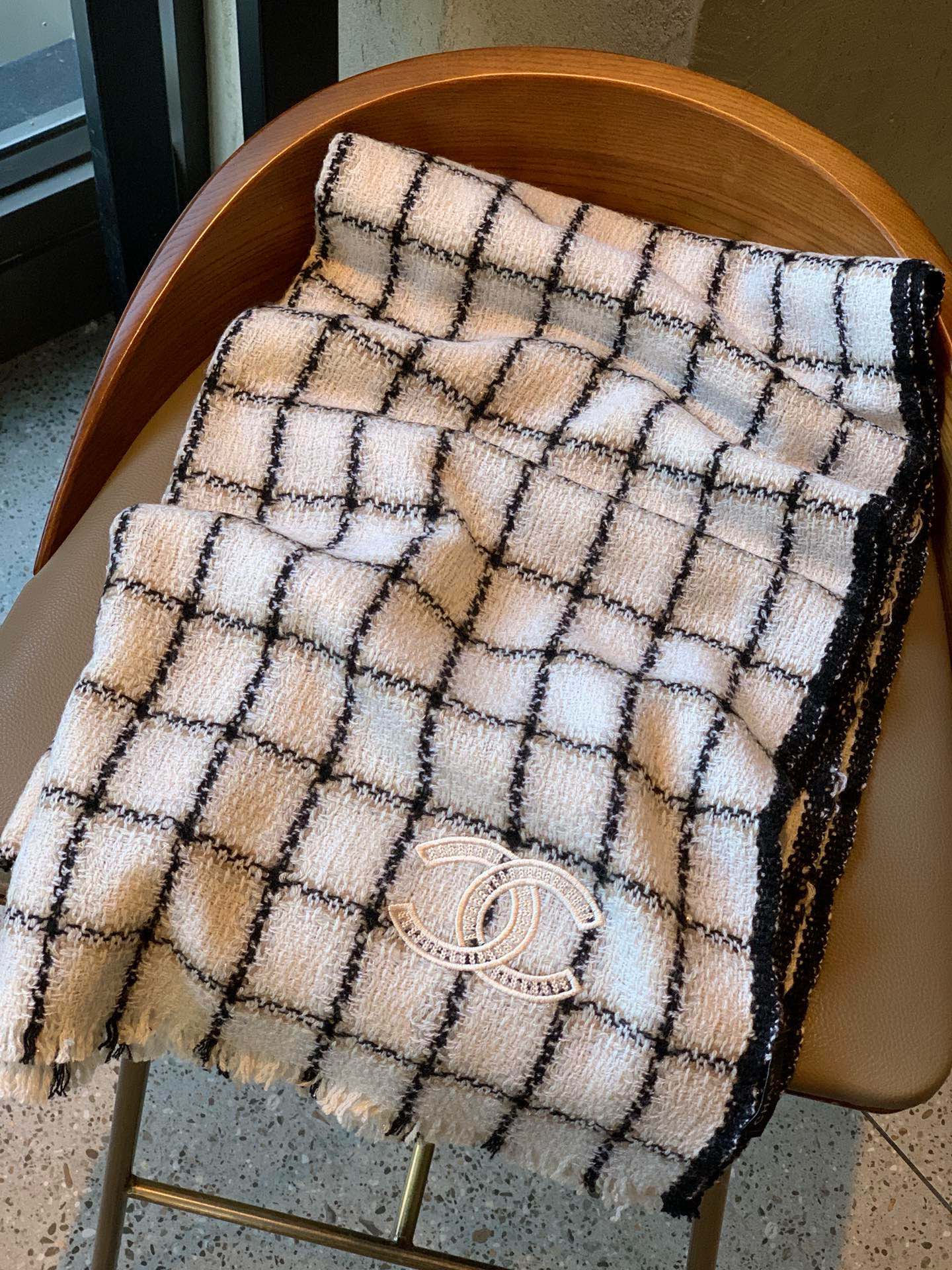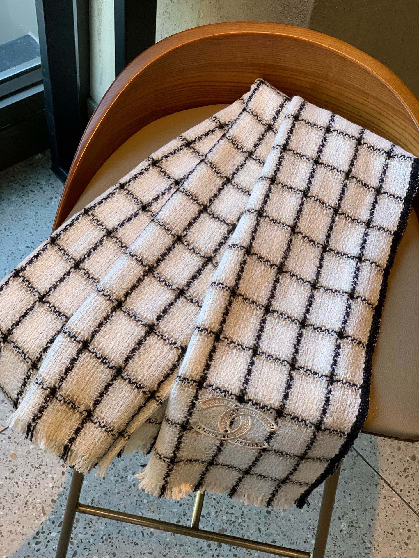 CC Scarf 200 CM In White With Black Plaid Cashmere 416803