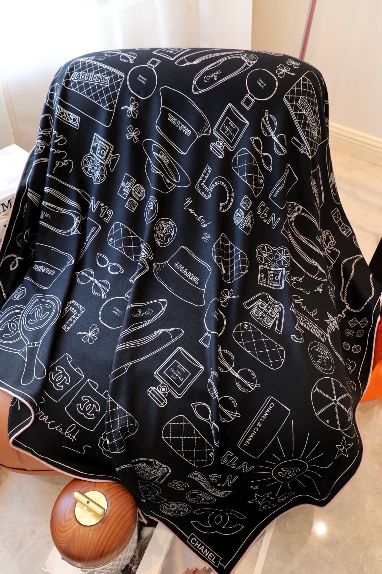 CC Square Scarf 140 CM In Black Mix White Cashmere Silk 368822
