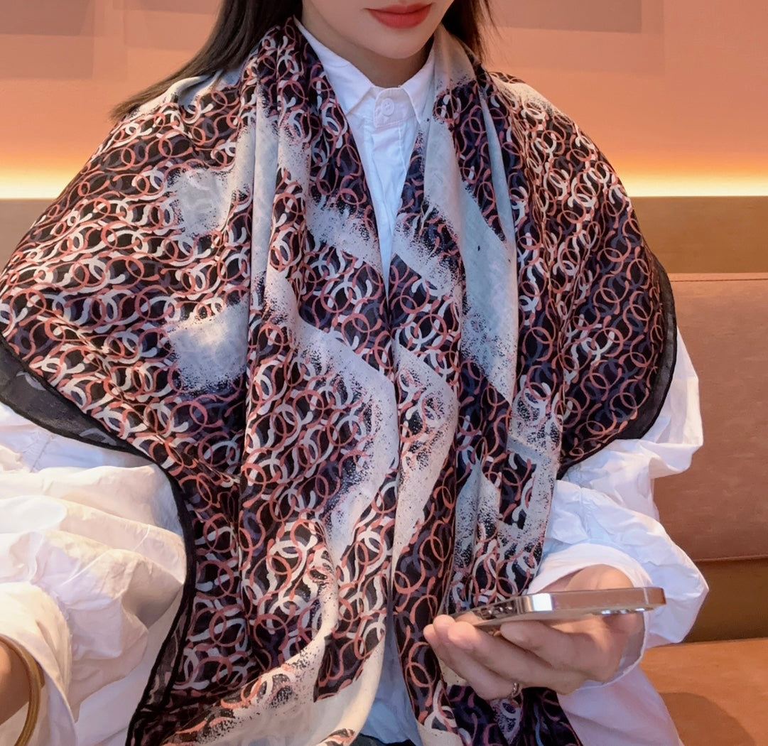 CC Square Scarf 140 CM In Colorful Cashmere Linen Fabric 371900
