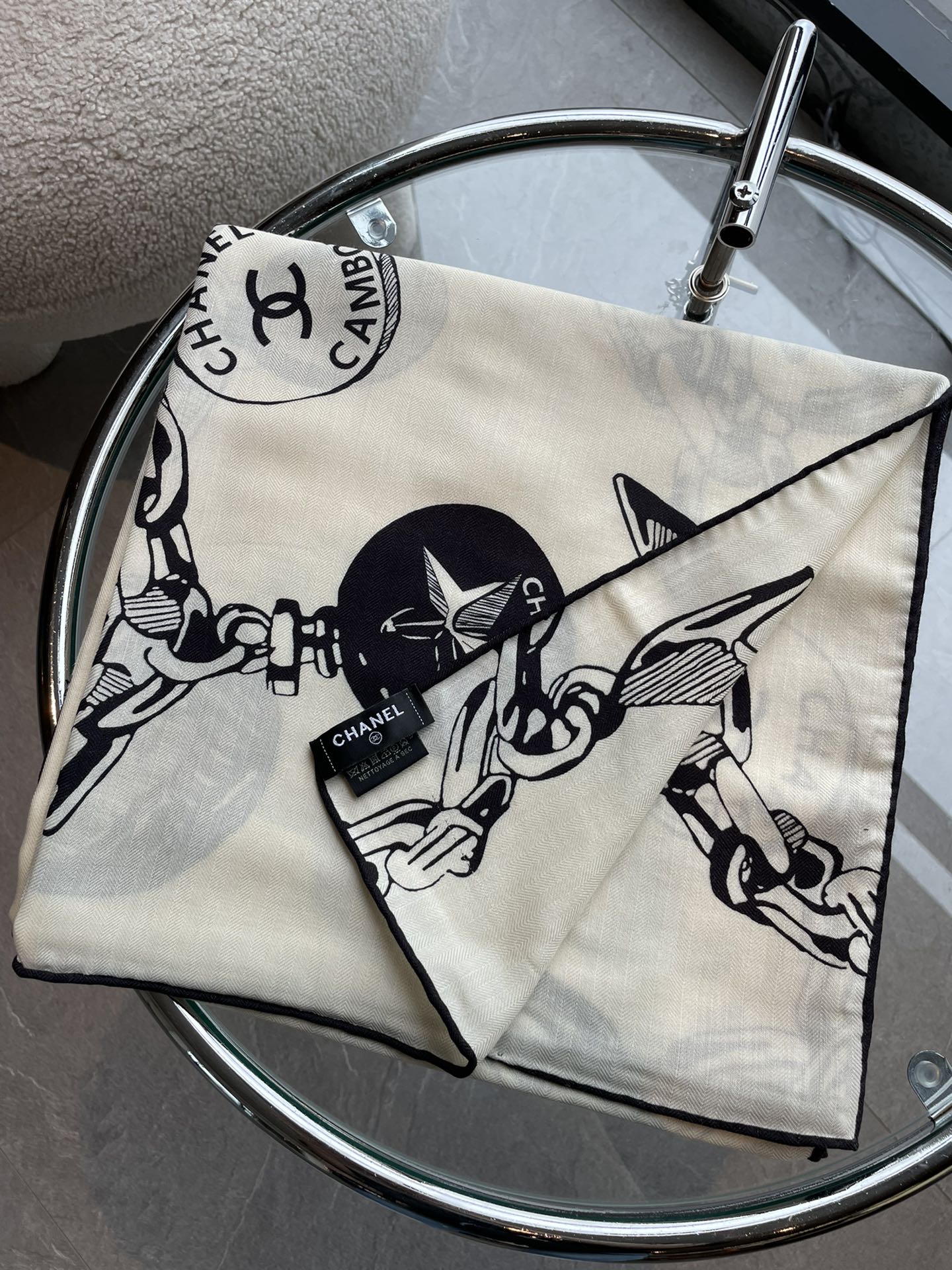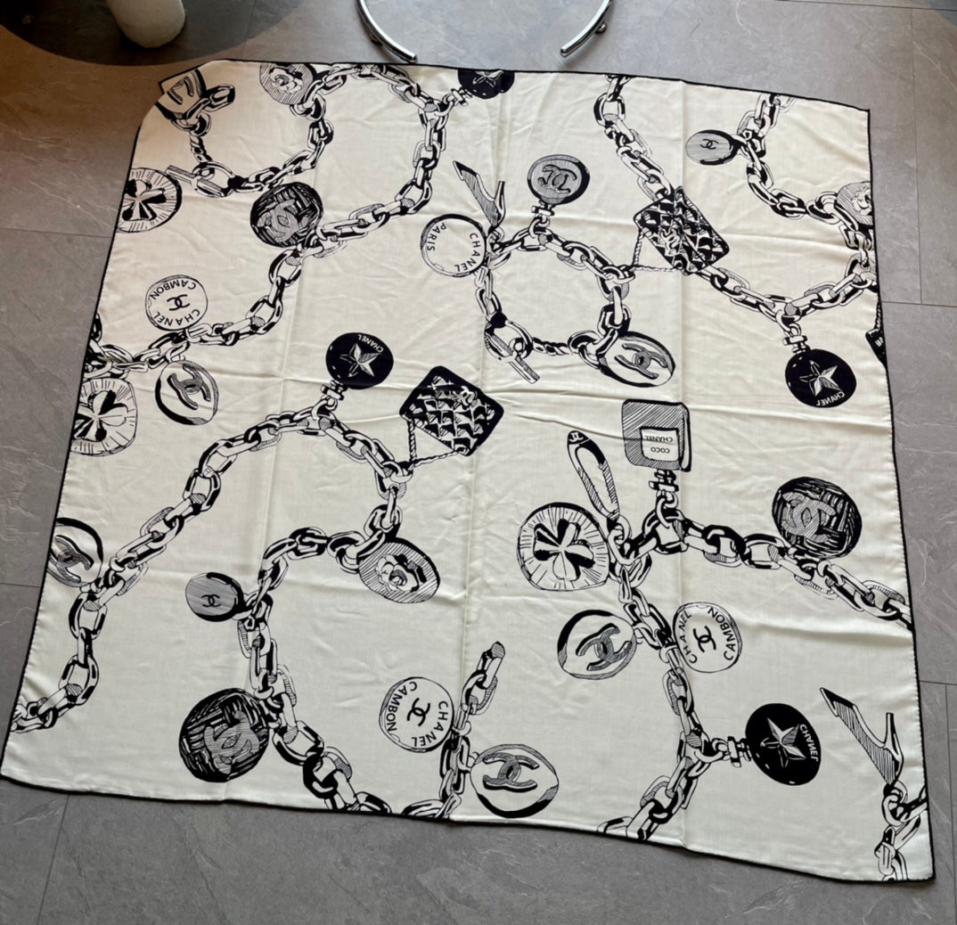 CC Square Scarf 140 CM In White Black Silk 421550