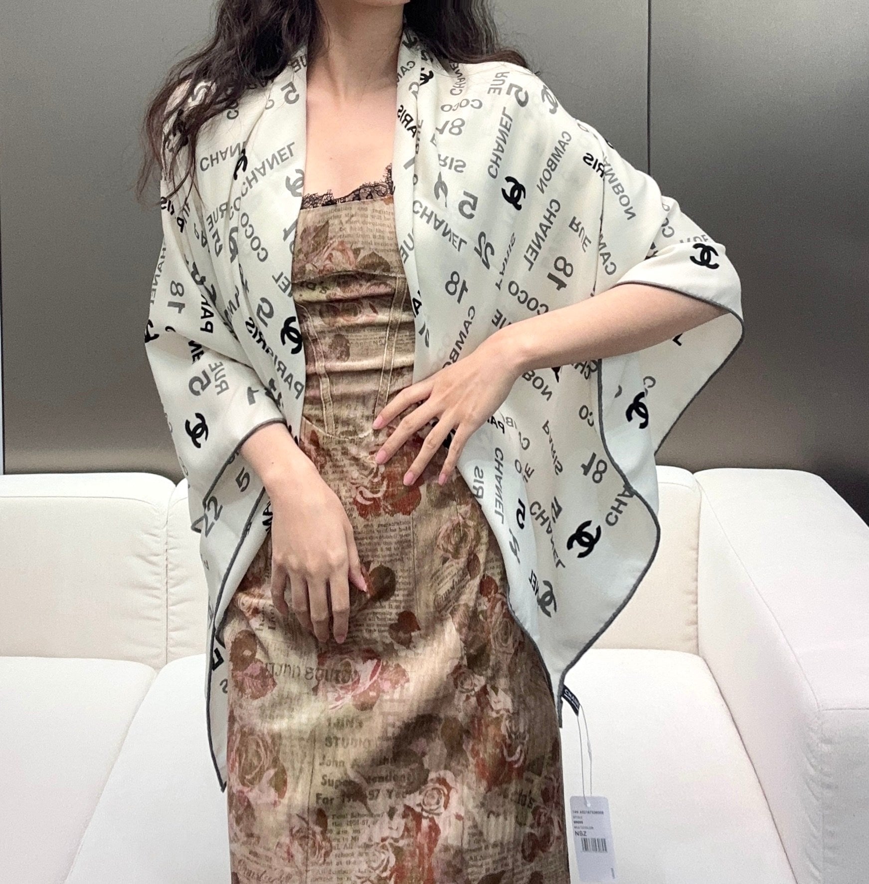 CC Square Scarf 140 CM In White Cashmere Silk 422703