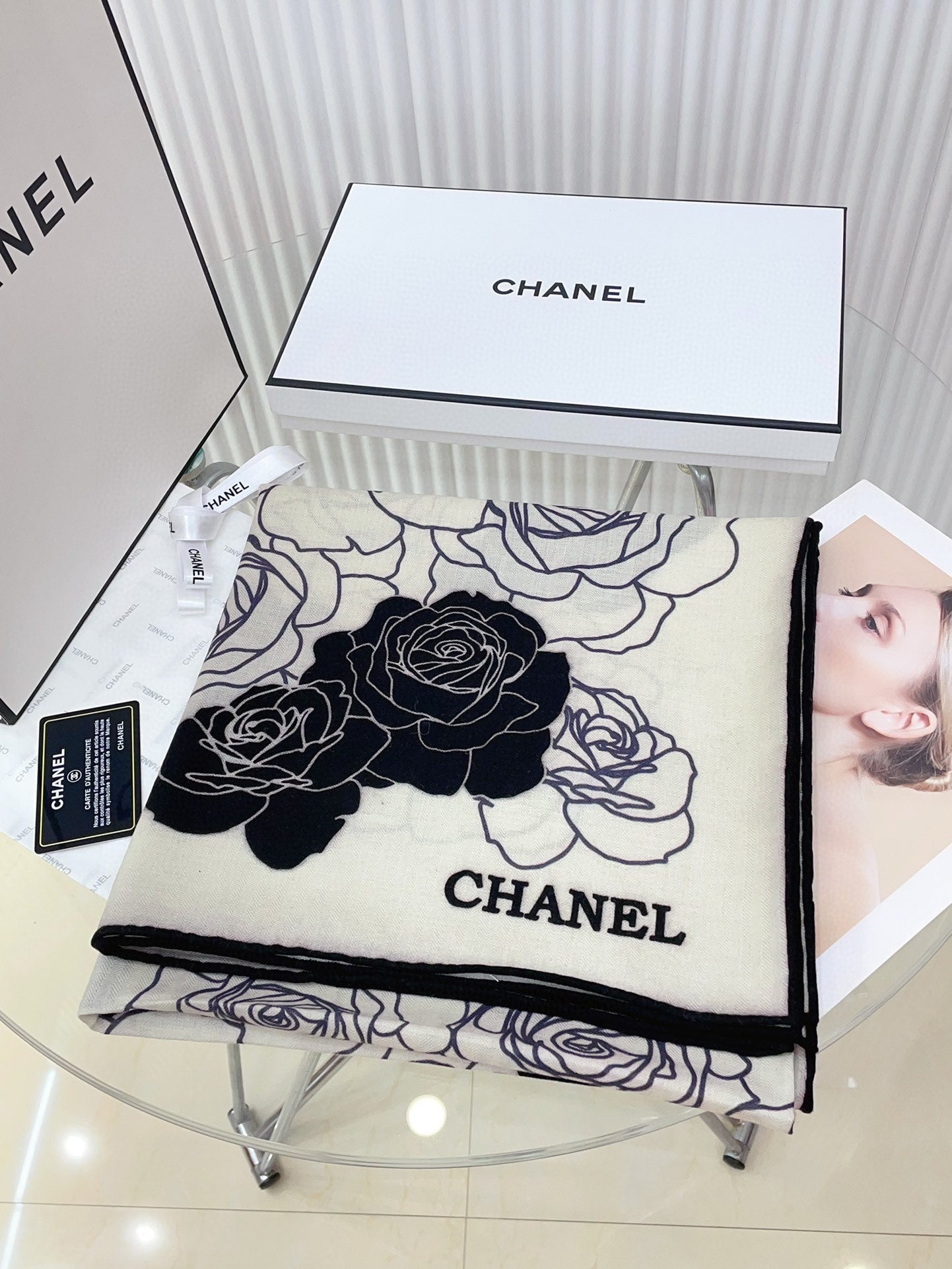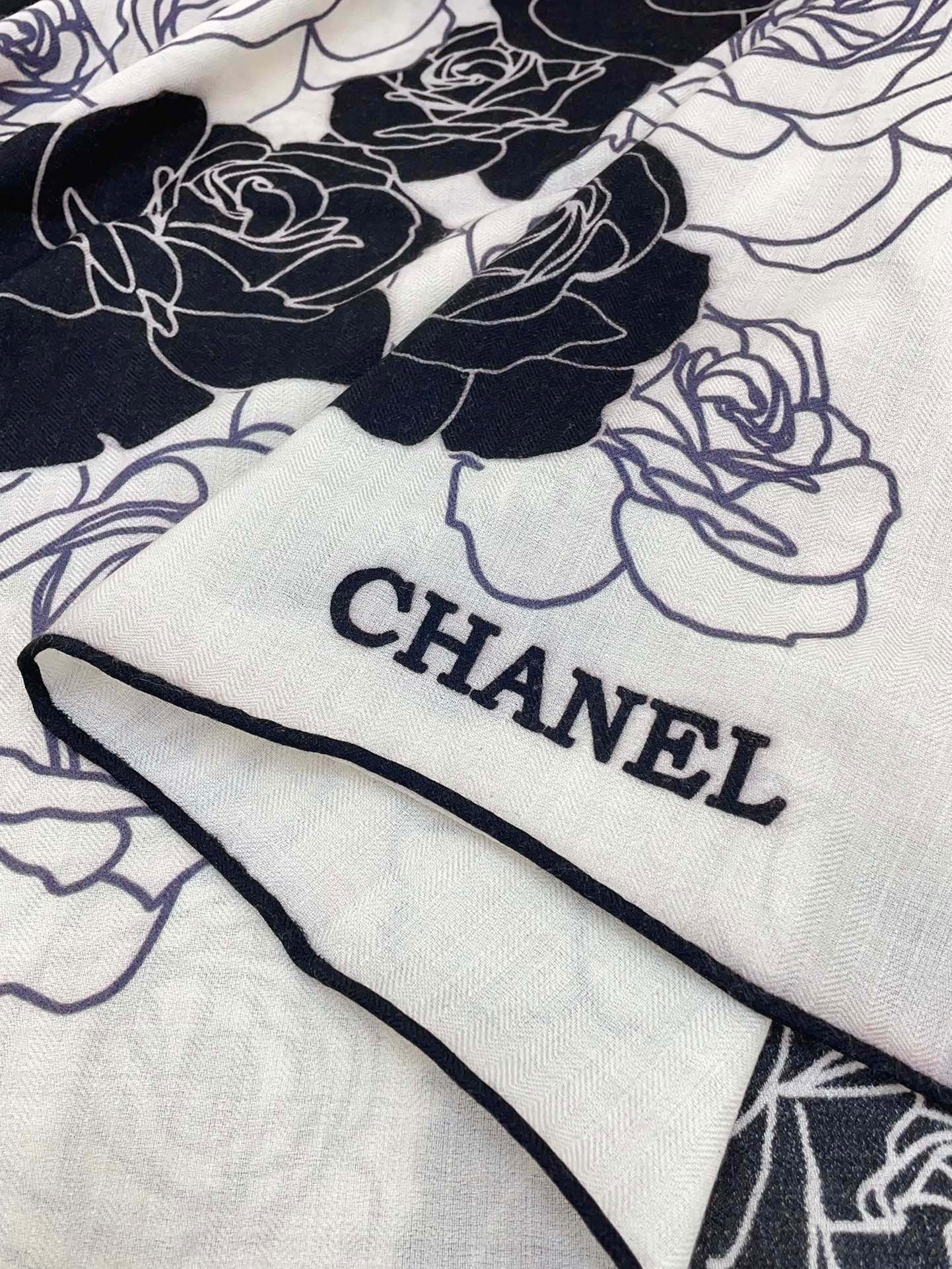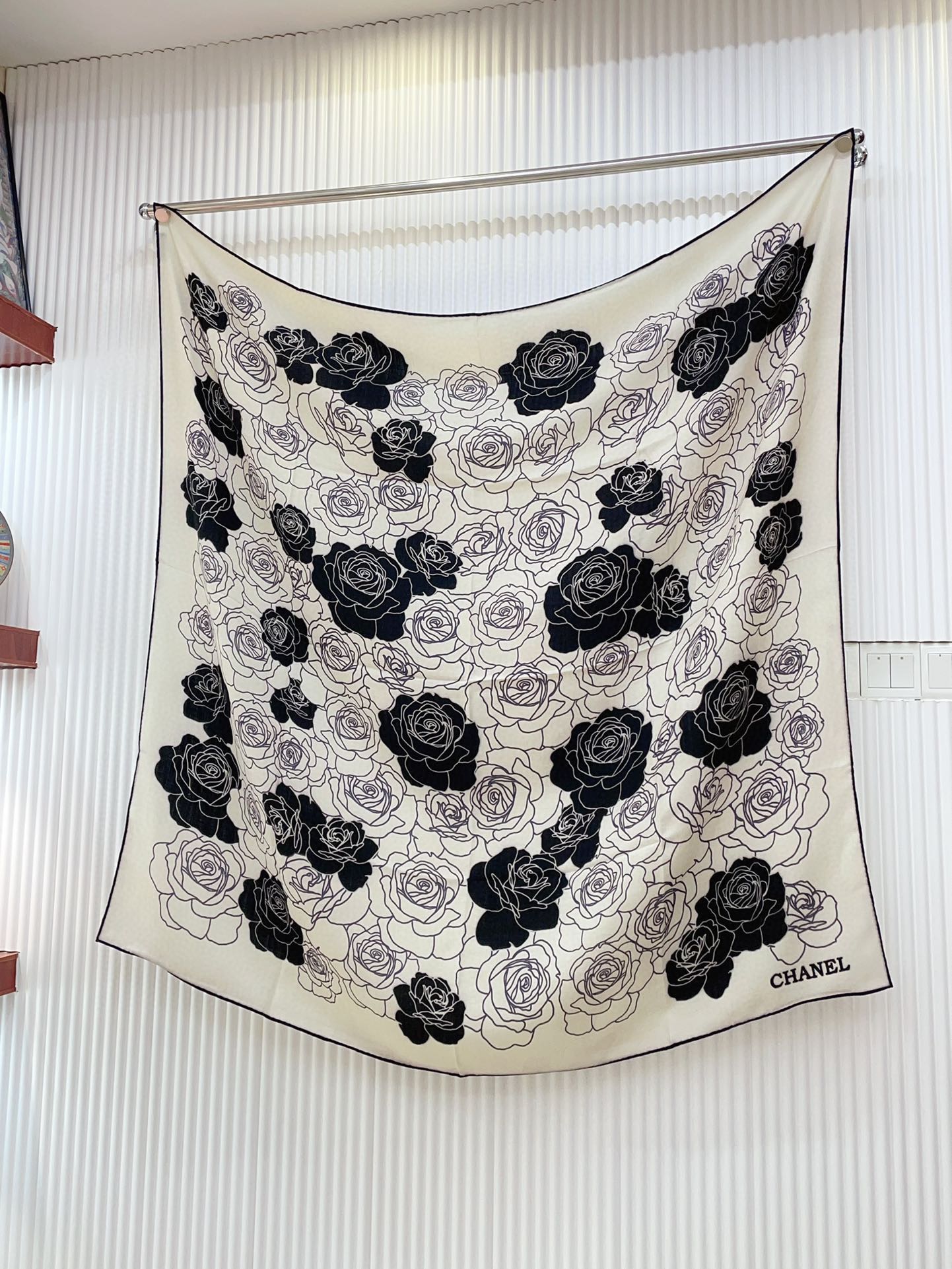 CC Square Scarf 140 CM In White Mix Black Small Flower Cashmere And Silk 342863