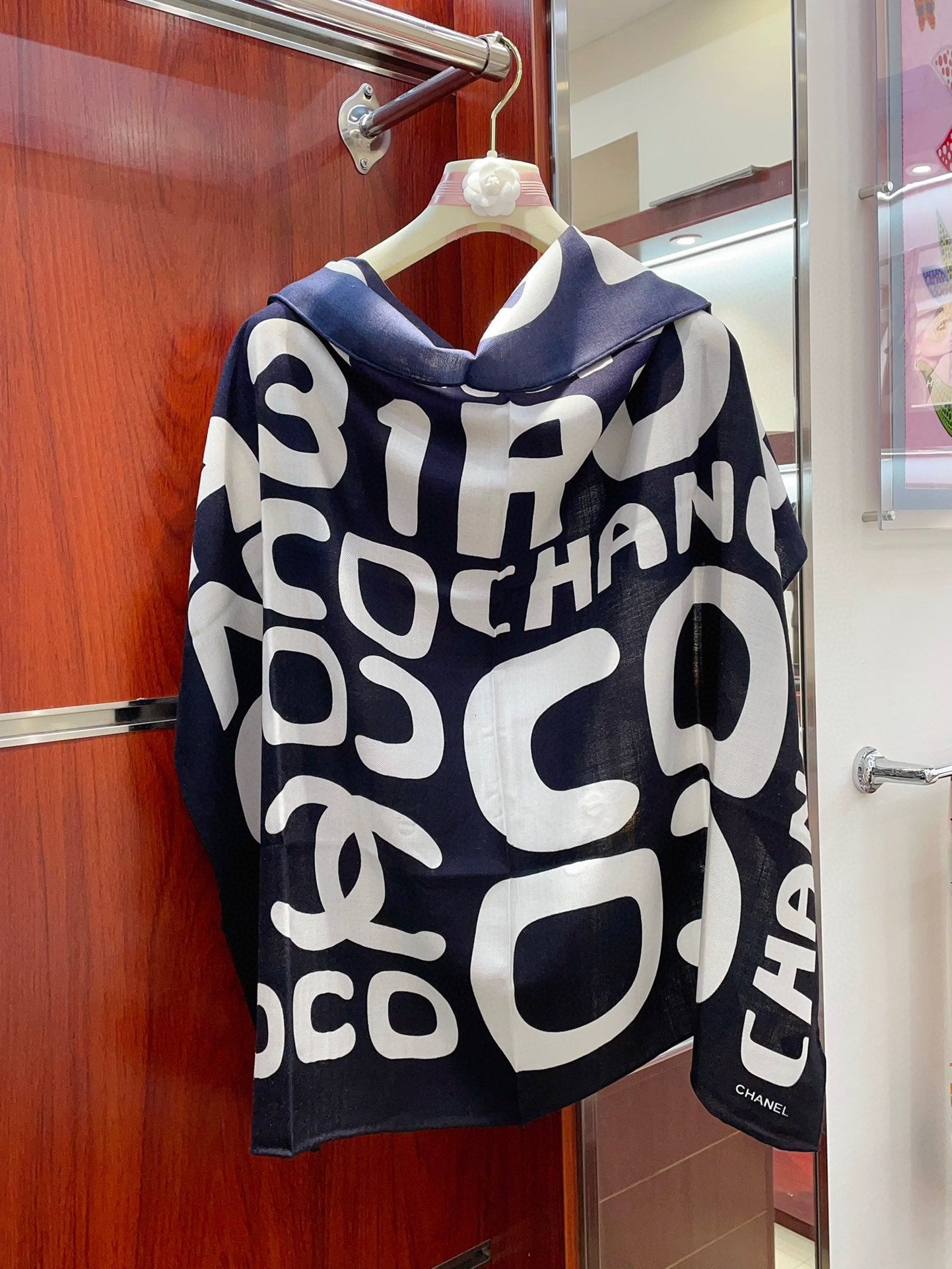 CC Square Scarf 90 CM In Black Mix White Cashmere And Silk 398258