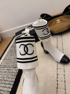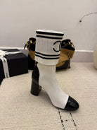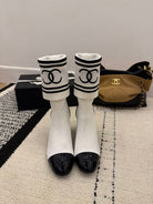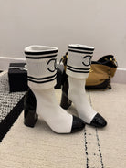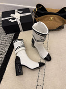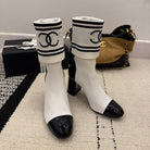 CC 2025 Chunky Heel Sock Boot White Leather Knit 548118