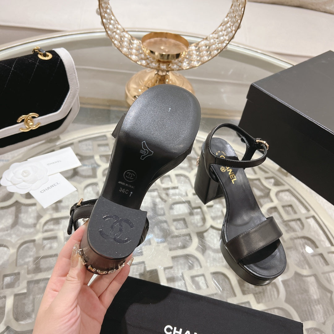 CC 25C 10CM Mid Heed Sandals Black Italian Leather 213318