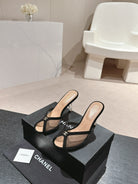 mule sandal 75 black fabric dark beige calfskin