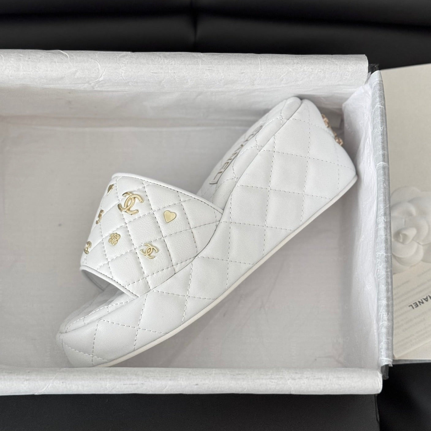 Platform Peep-Toe Sandals White/Black Caro Lambskin