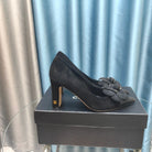 CC HIGH HEELS 80 MM IN BLACK SUEDE AND CALFSKIN WITH FLOWER