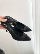 CC Slingback 95mm Black Lambskin And Denim Fabric