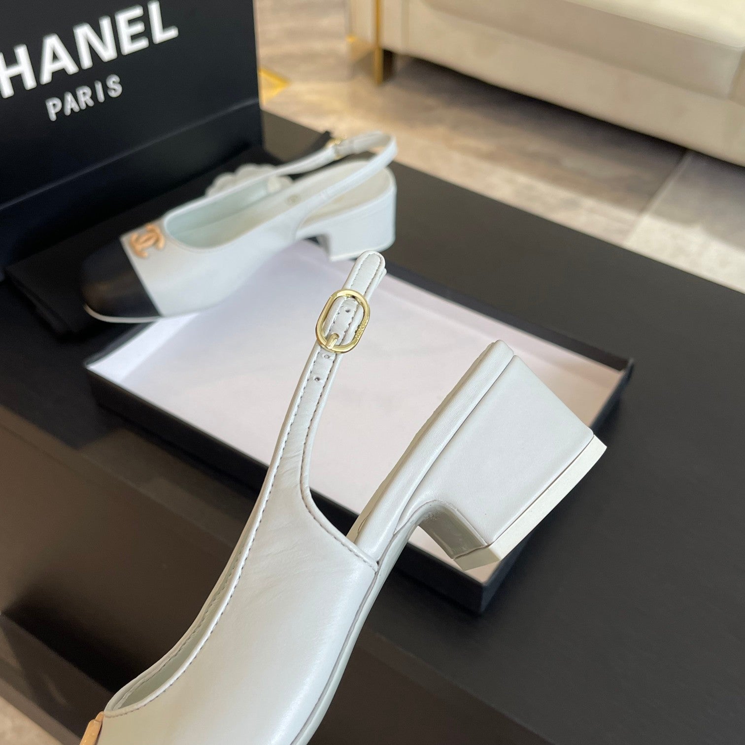 CC HIGH SLINGBACKS BEIGE CREAM SATIN AND LAMBSKIN
