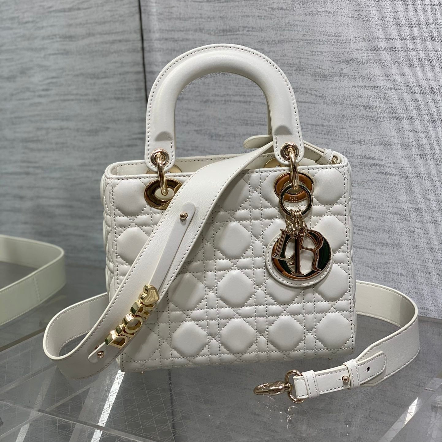 CD Lady Bag 20cm White Lambskin Light Gold Hardware
