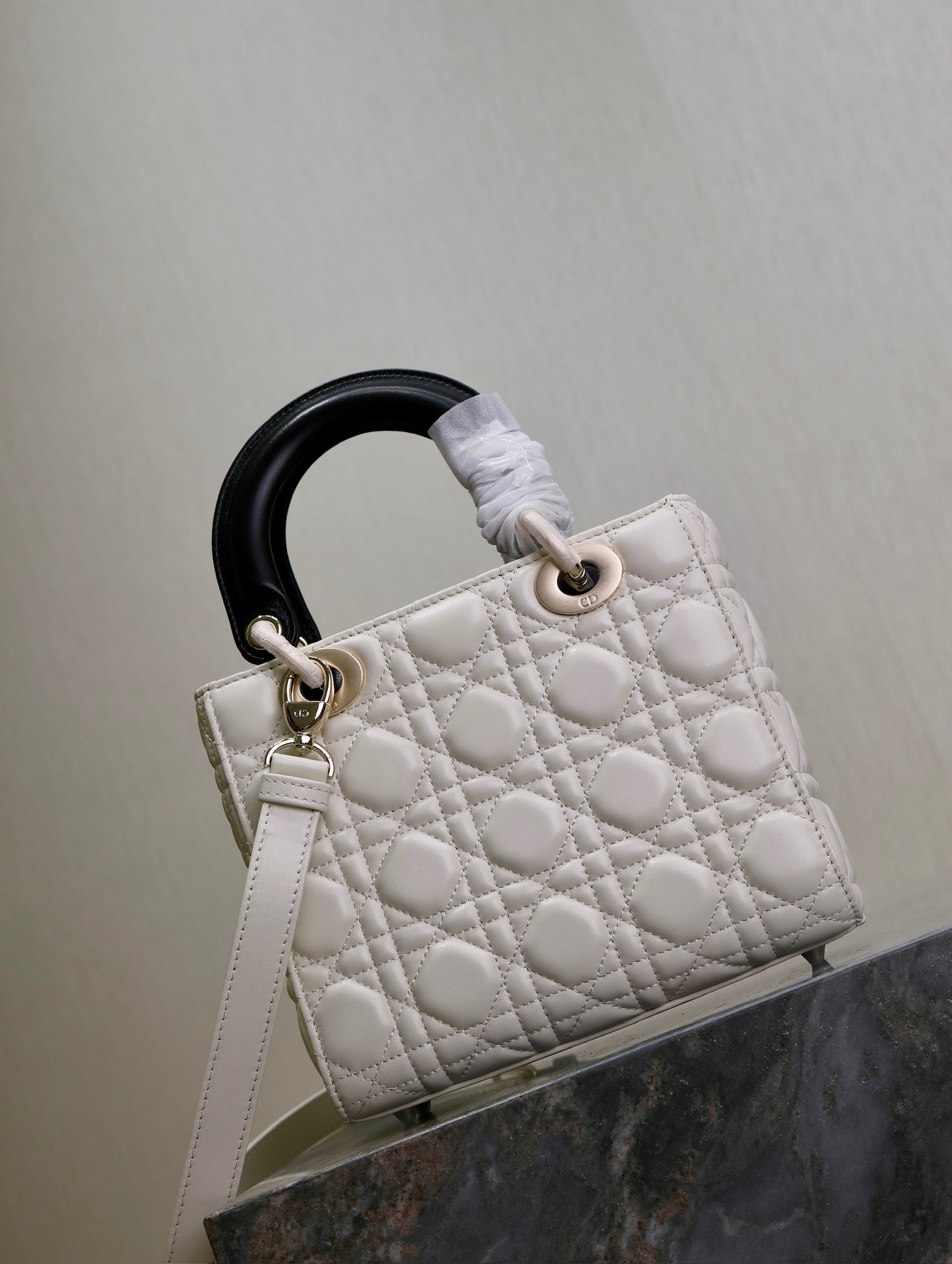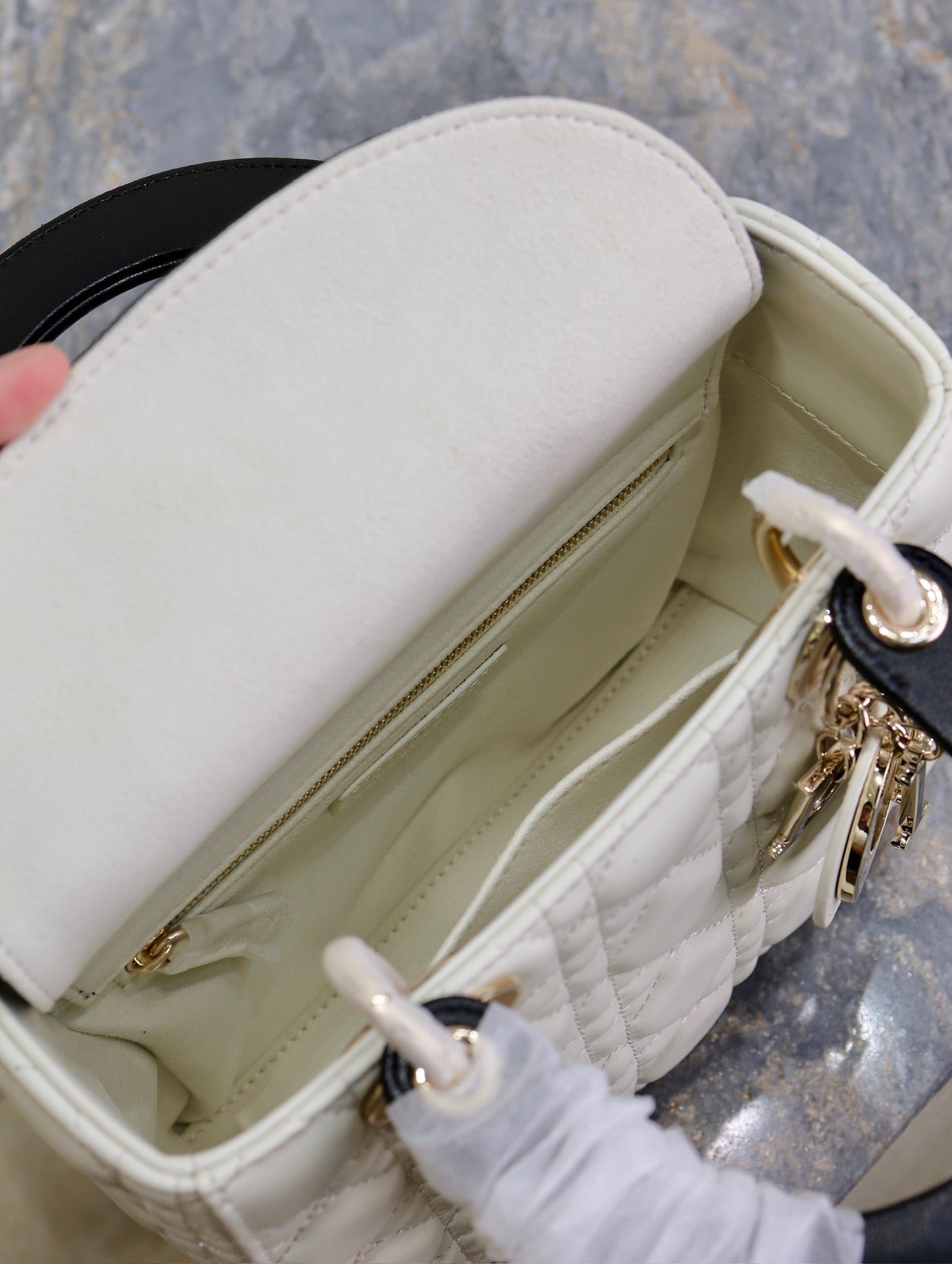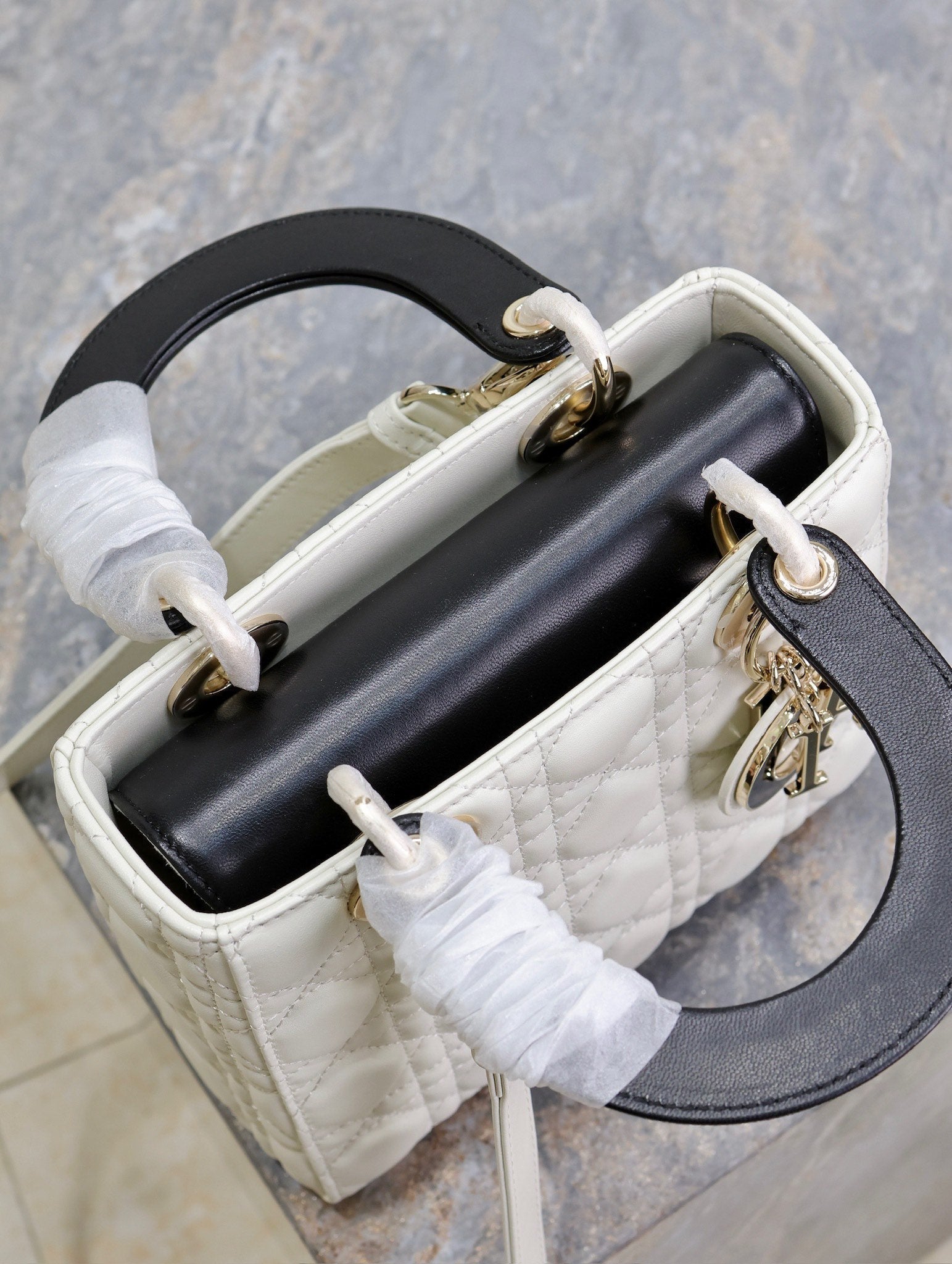 Lady Bag 17cm White Black Lambksin