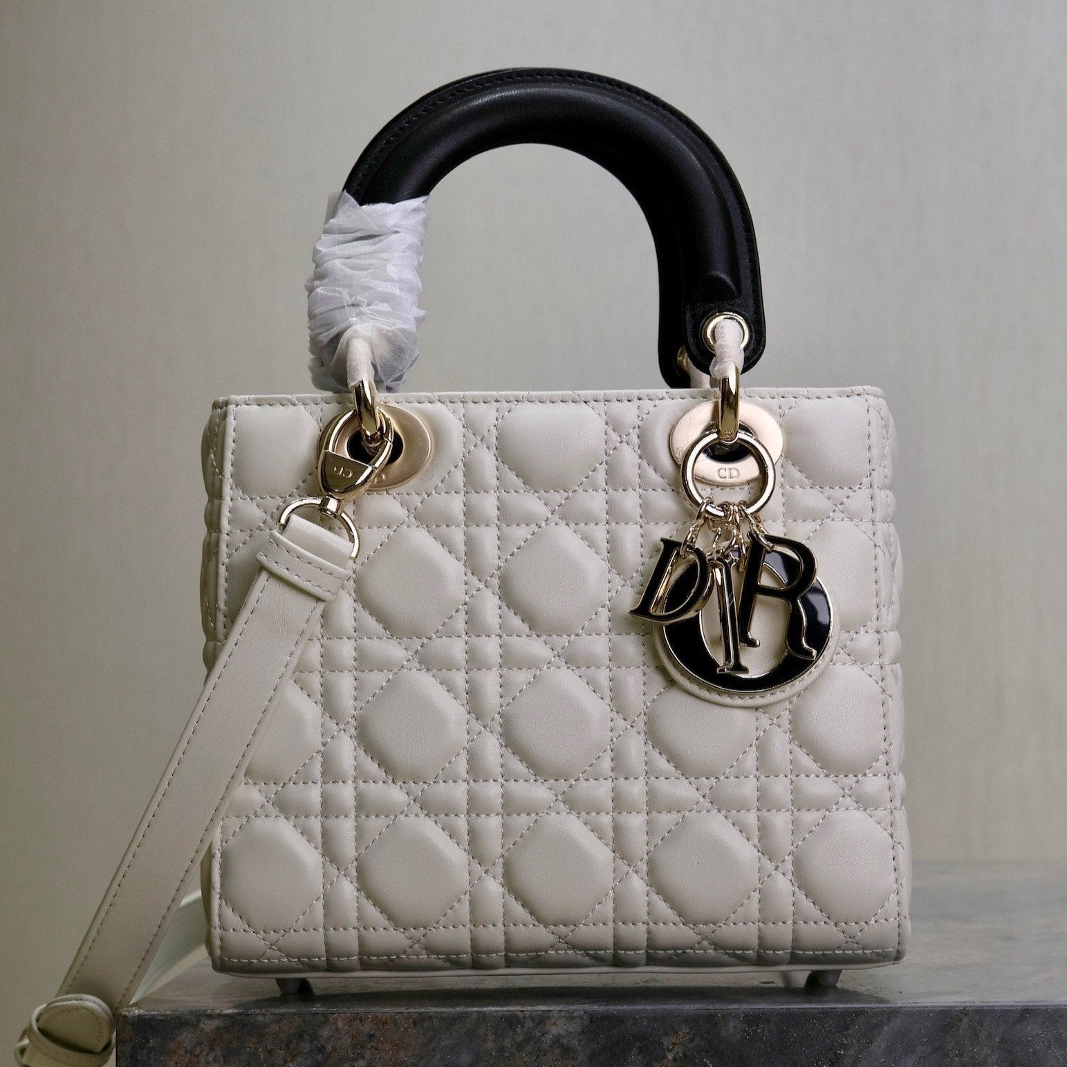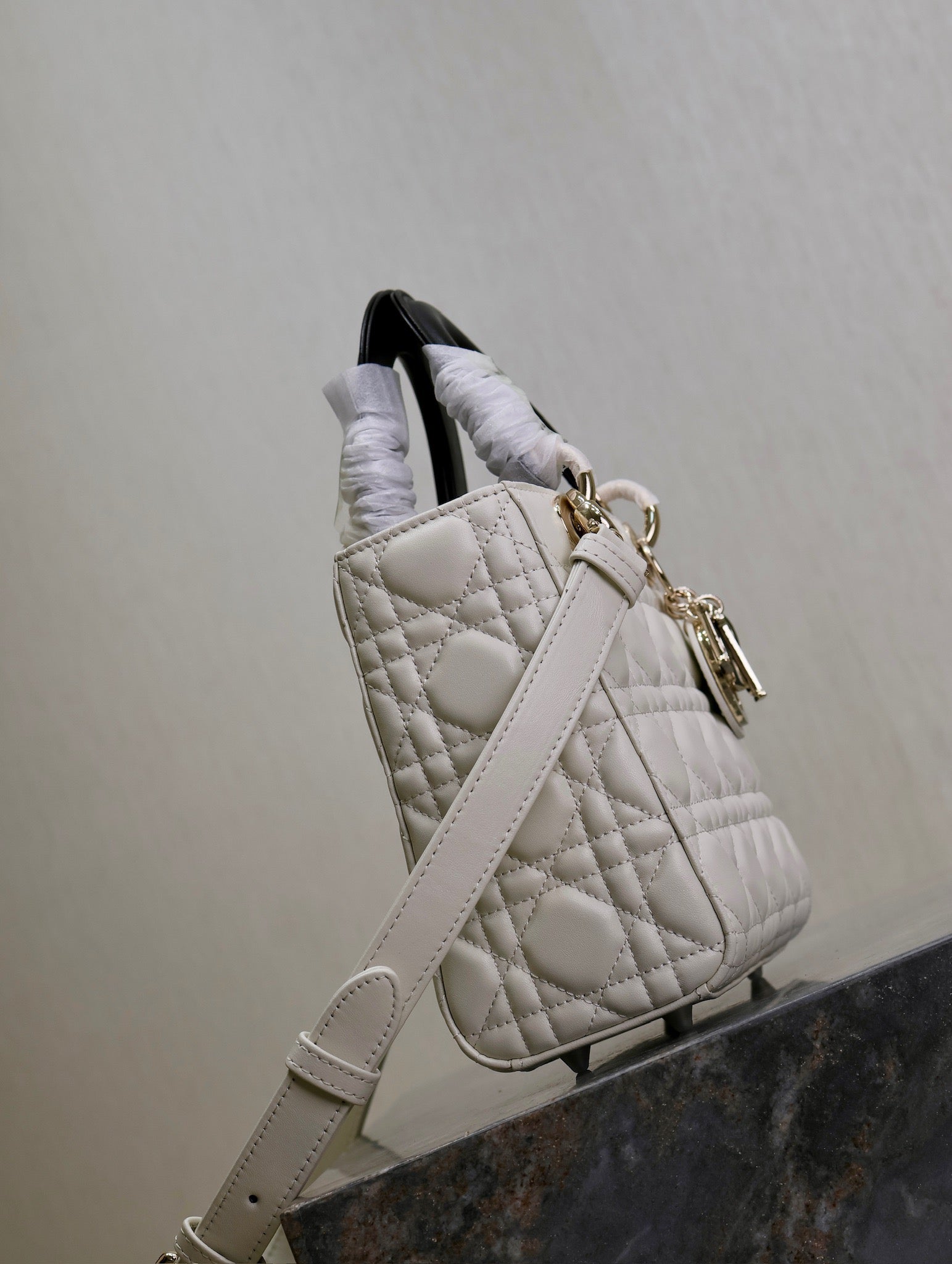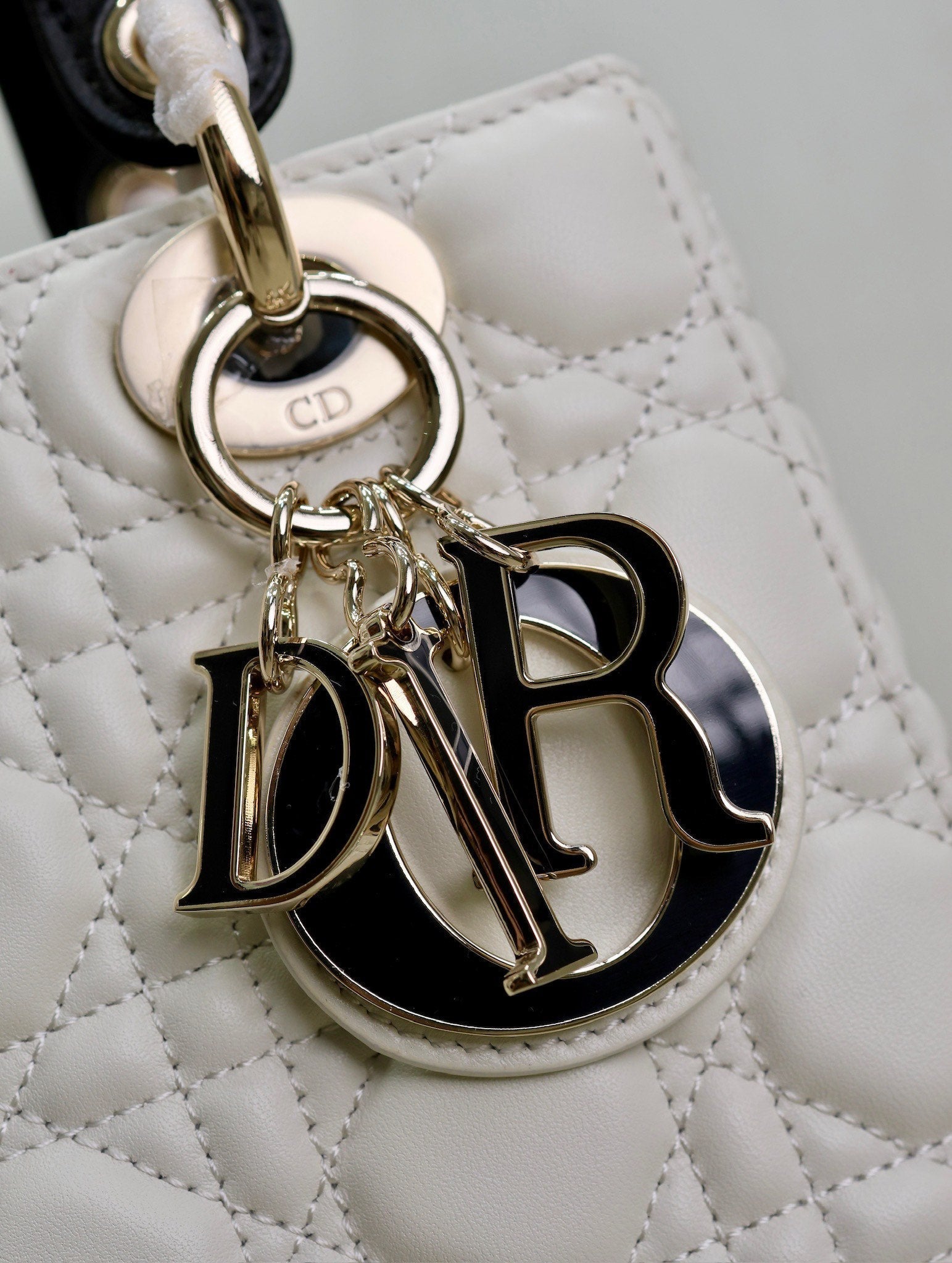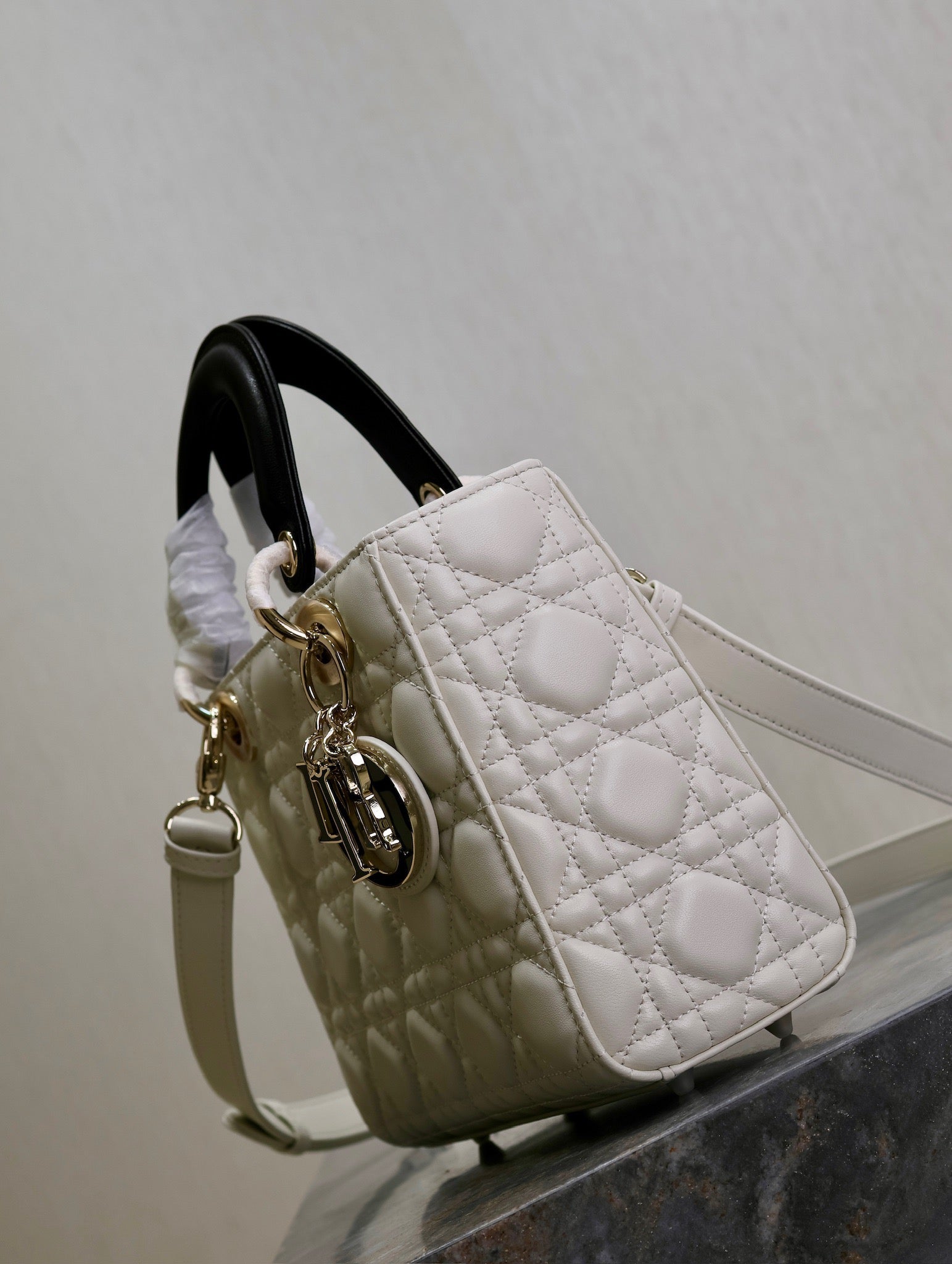 Lady Bag 17cm White Black Lambksin