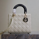 Lady Bag 20cm White Black Lambskin