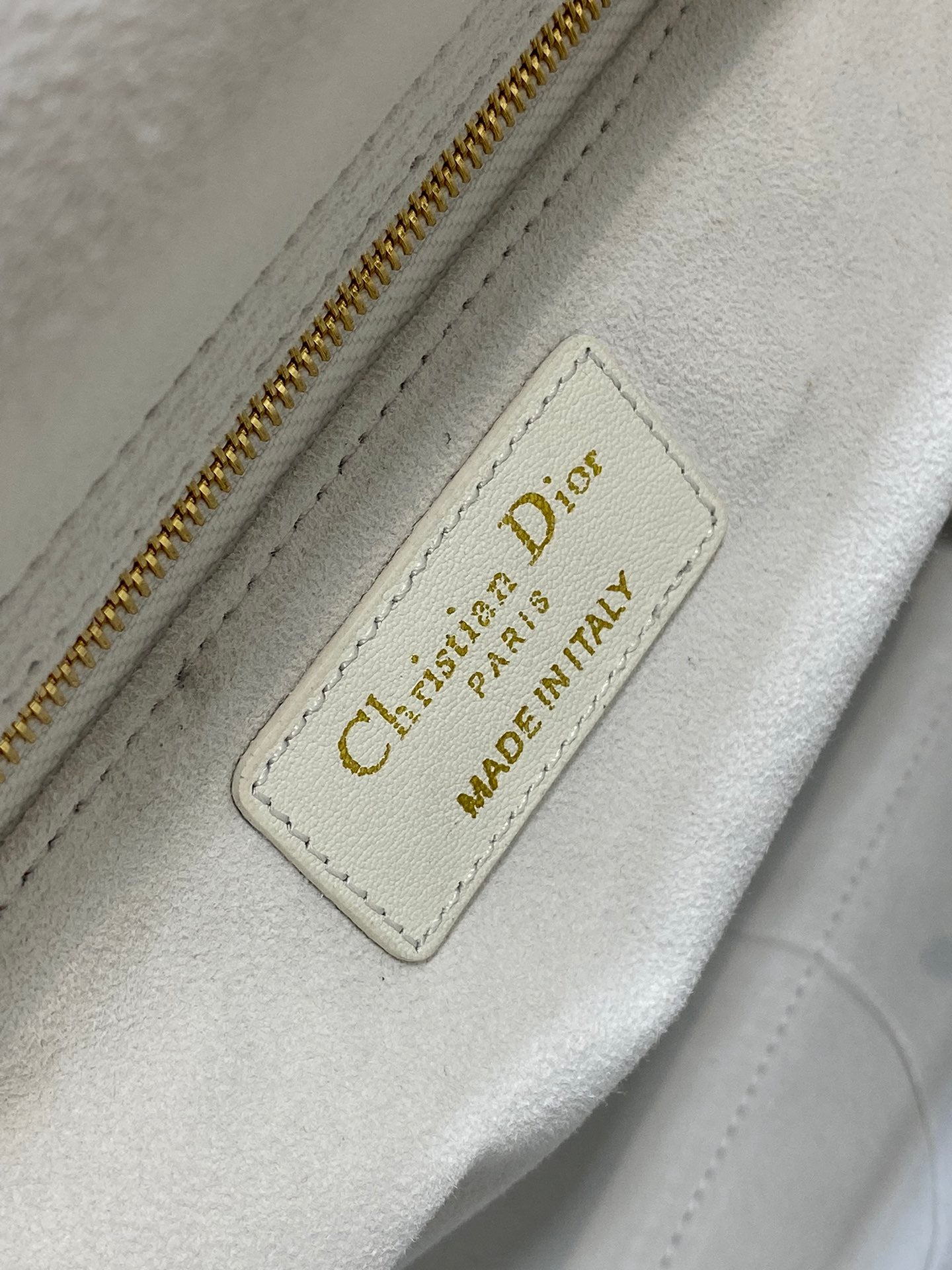 Lady Bag 20cm White Calfskin Blue Black Embroidery