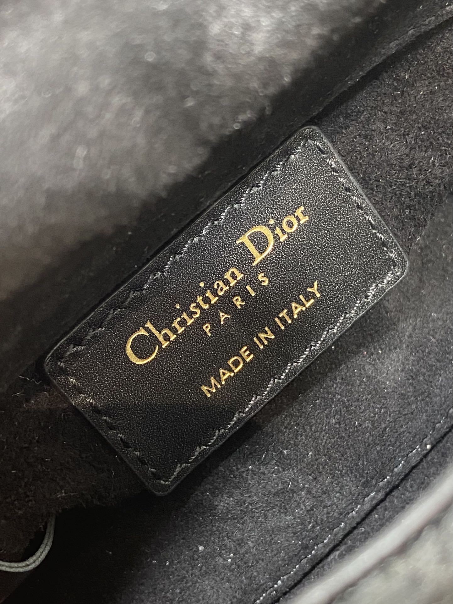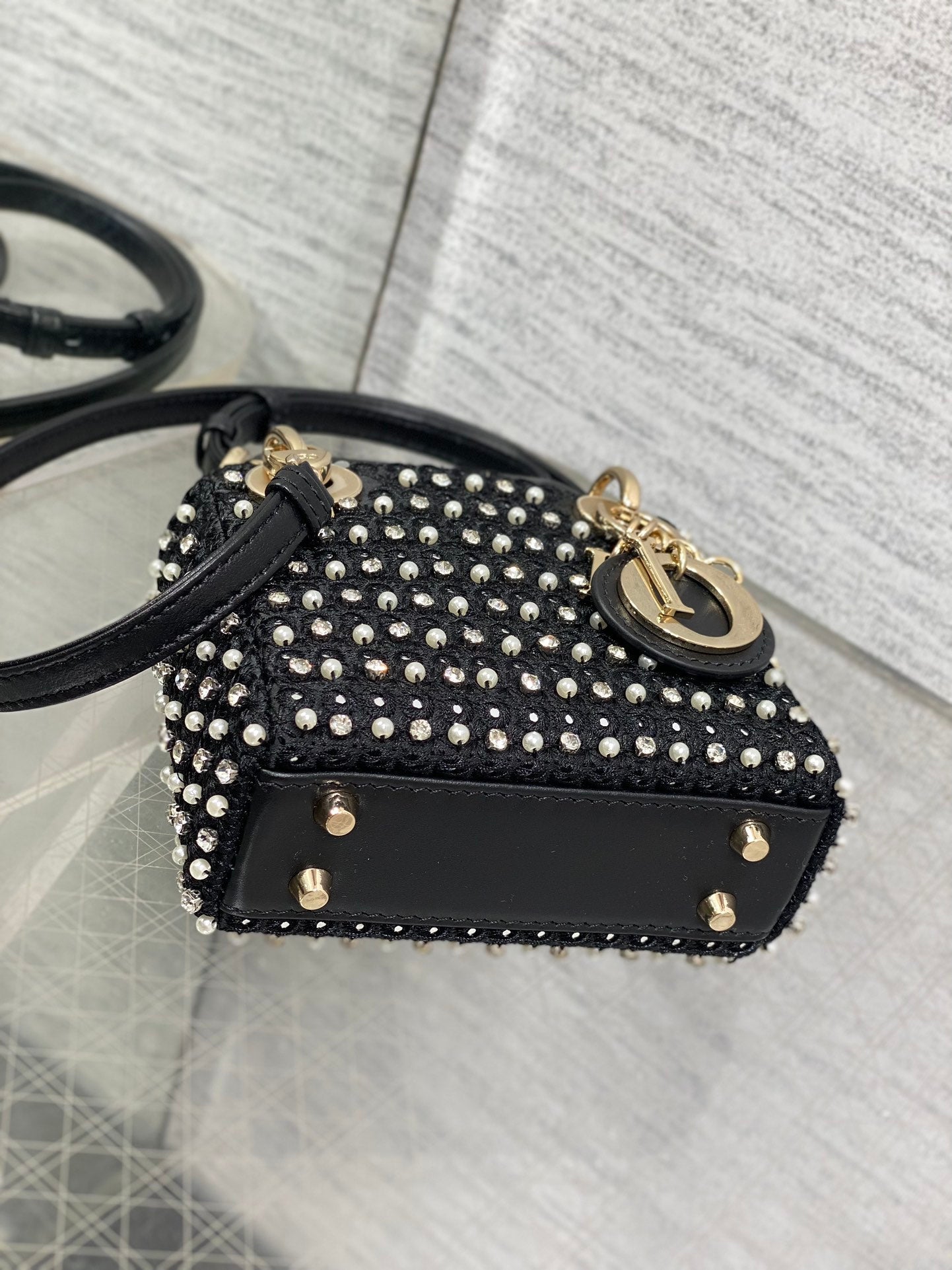 Lady Micro Bag 10cm Black Canvas Diamond Pearl