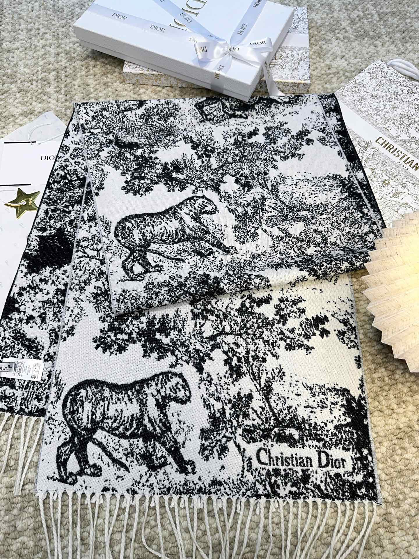 SCARF 220 CM IN BLACK MIX WHITE MONOGRAM CASHMERE AND WOOL 413658