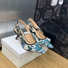 JAdior Slingback Pump 65 Pastel Midnight Blue Multicolor Embroidered Cotton with Toile de Jouy Mexico Motif