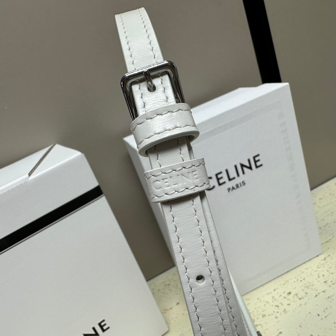 Celine Nano Supple 22cm White Calfskin Beige Raffia
