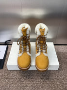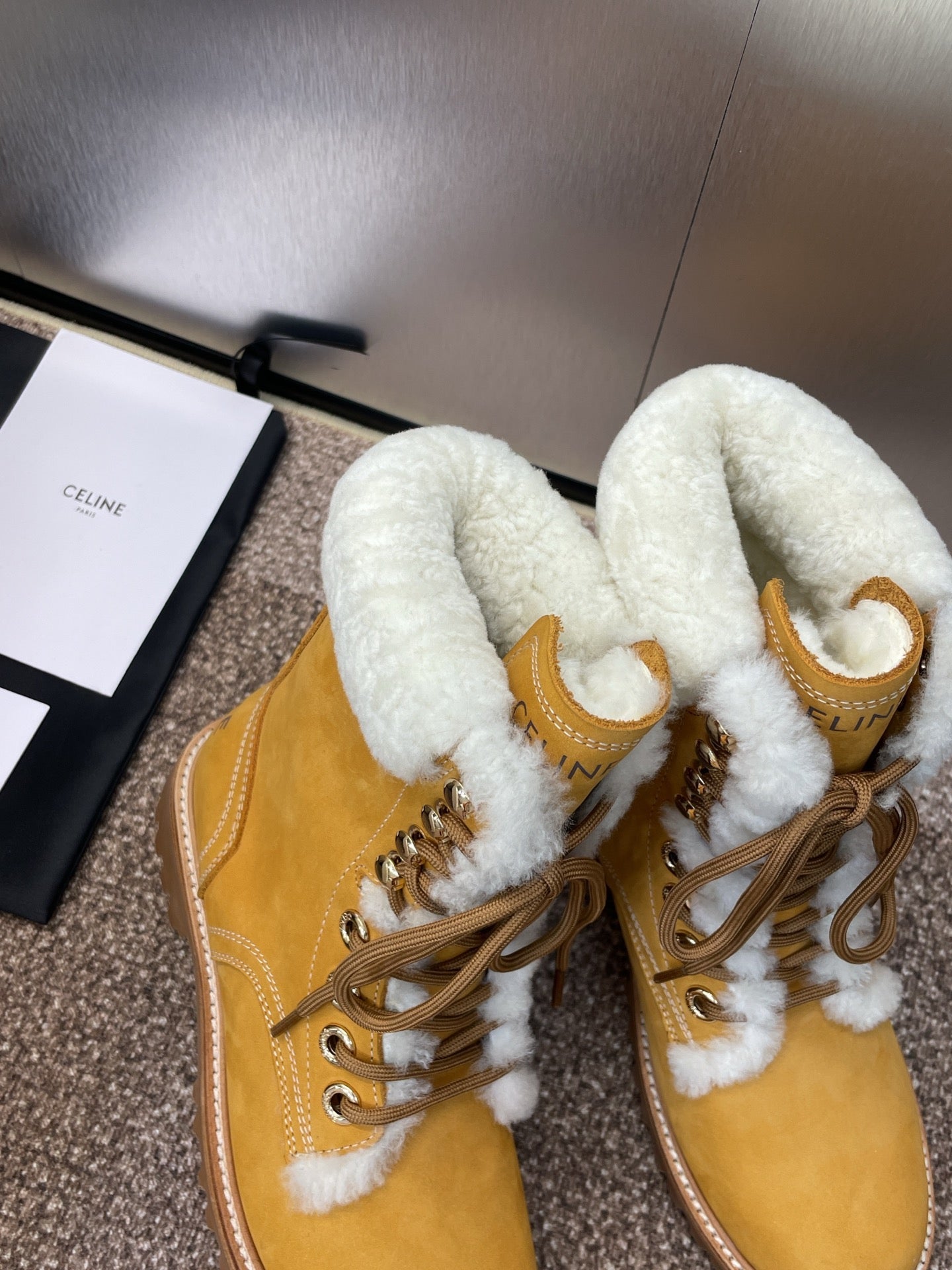 CELINE Ankle Boots Yellow White Suede Lambswool 433388
