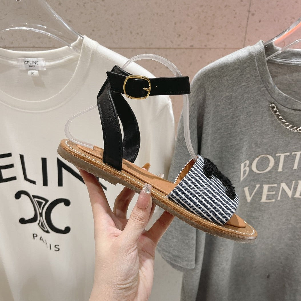 LYMPIA SANDAL IN TRIOMPHE MACCRAMÉ COTTON & CALFSKIN BLACK/NAVY
