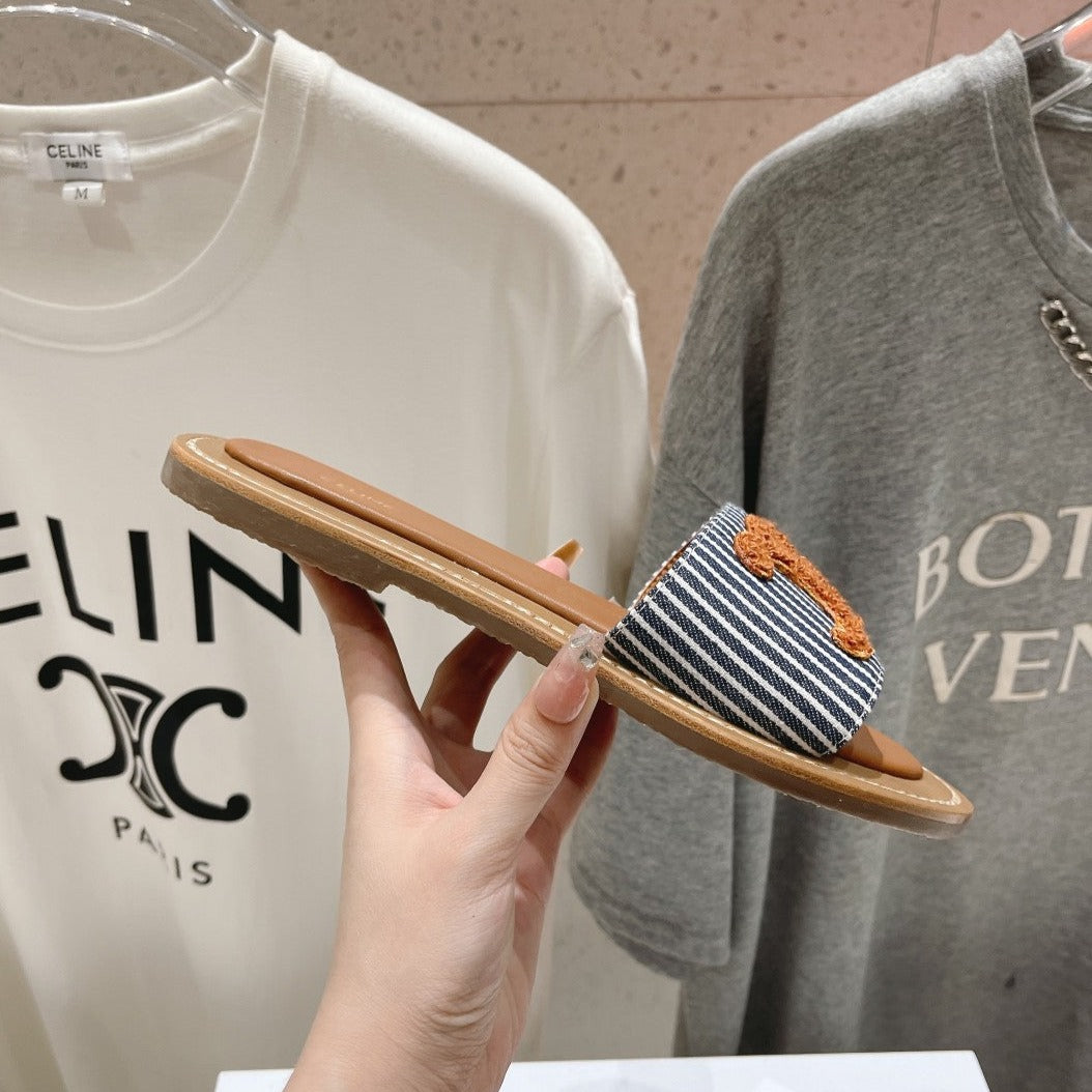 LYMPIA MULE IN TRIOMPHE JACQUARD WOOLLEN FABRIC BROWN BLACK CARO