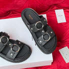 Sandal Flat White Black Canvas