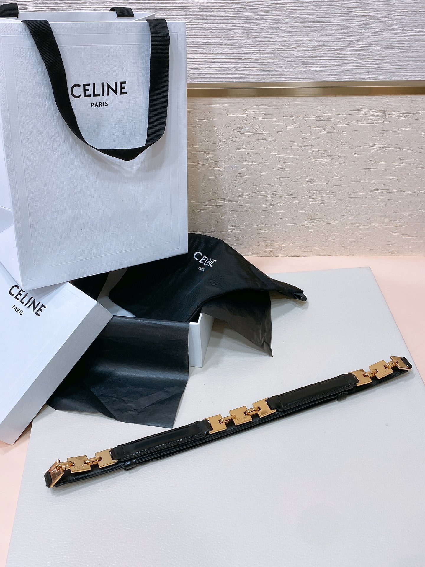 CL SMALL 18 MM GOURMETTE TRIOMPHE ADJUSTABLE BELT IN BLACK LEATHER GOLD HARDWARE