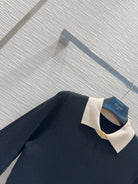 Celine 2025 A-line Dress Black mix White Tencel cotton