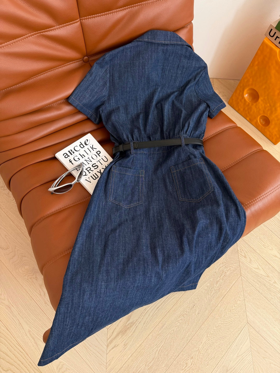 Celine 25 Arc de Triomphe Logo Embroidered Denim Dress Blue Cotton