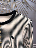 Celine 25 Striped Knitted Long-sleeved T-shirt White Black Cotton