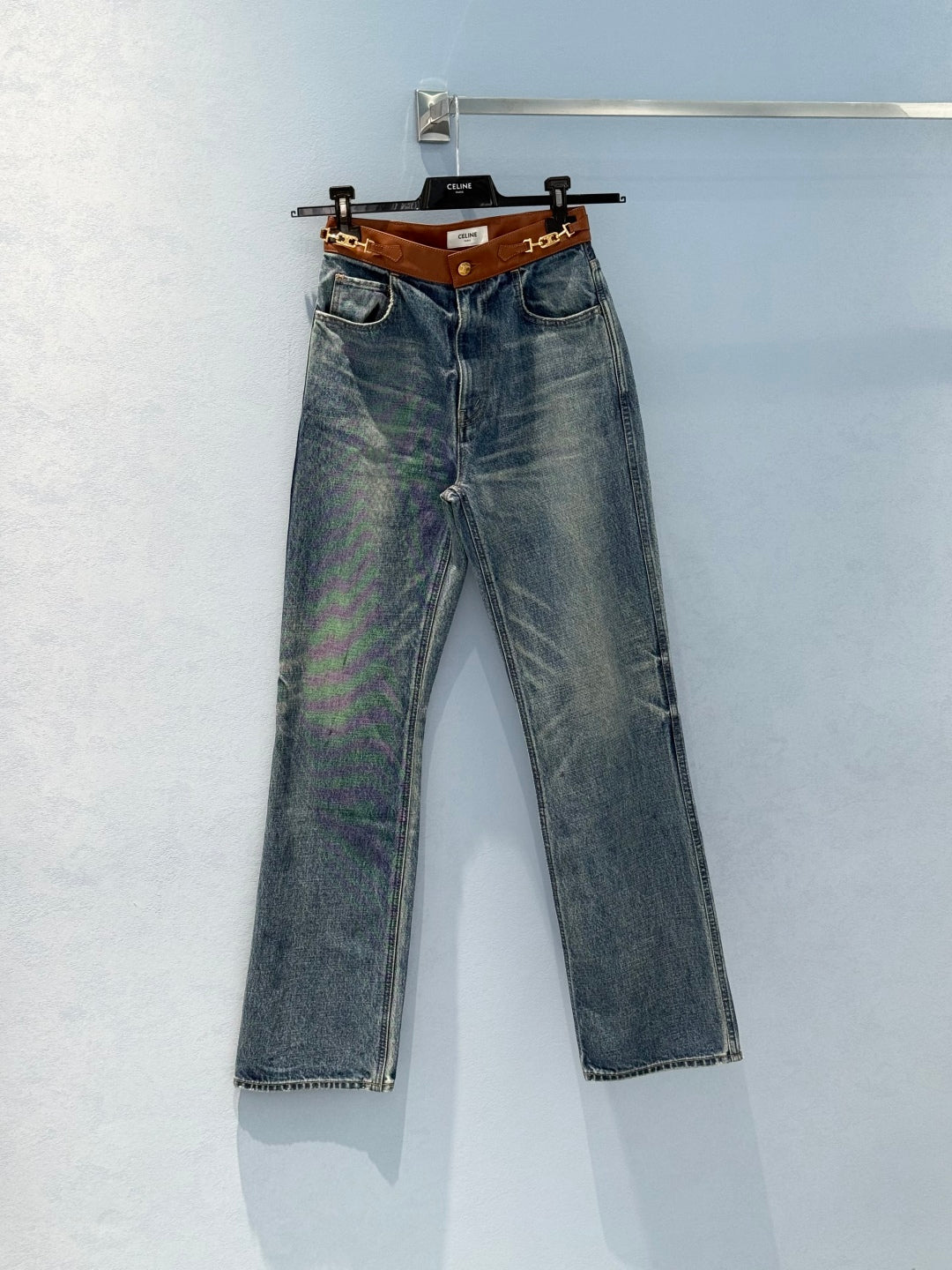 Celine Denim Jeans with Belt Blue mix Brown Cotton